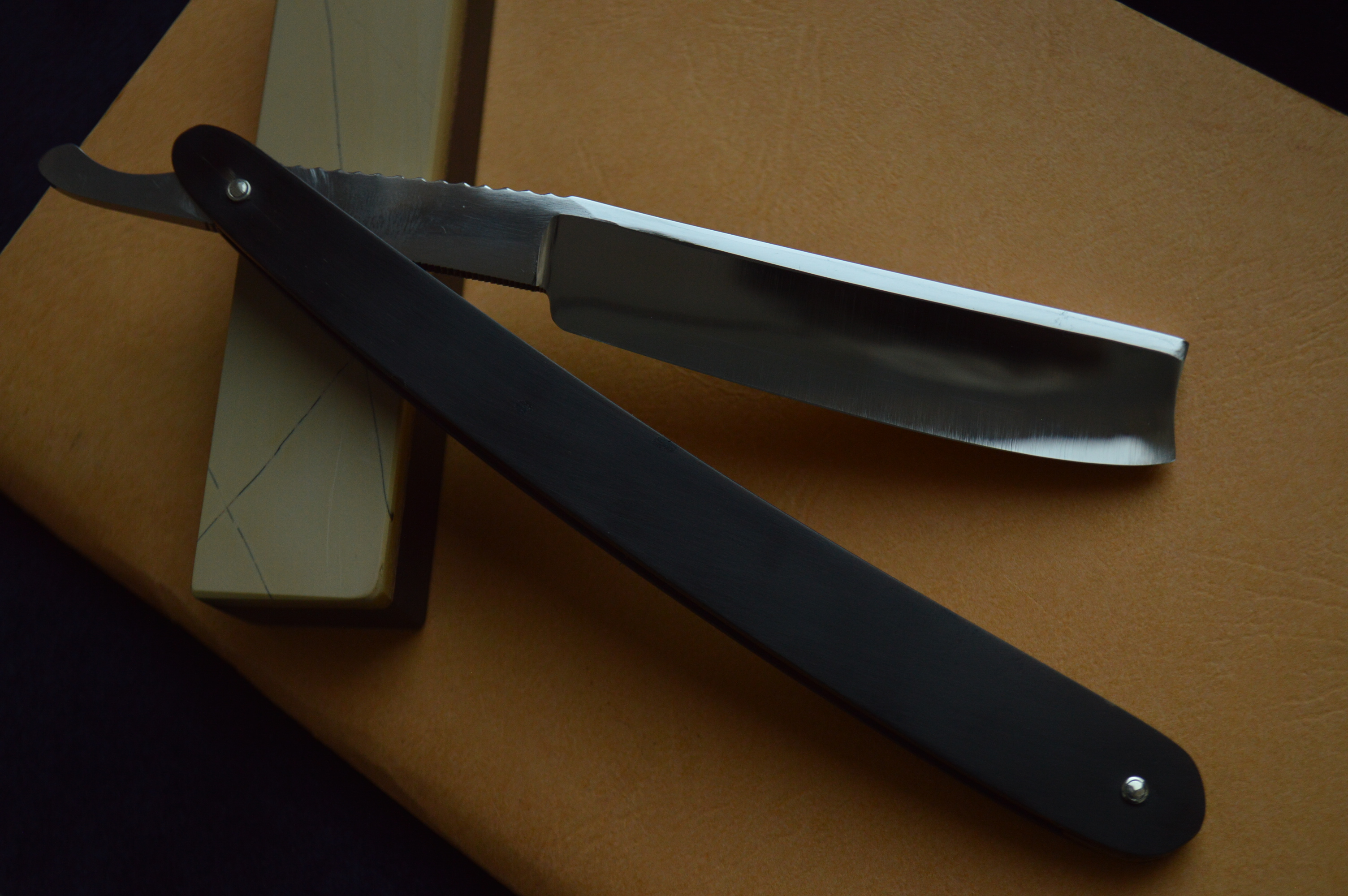 Профессионально восстановленная бритва в строении клин. Ширина полотна – 6/8, ручка рог в замечательном сохране. Сама сталь в лучших традициях французских бритв: вязкая, мелко-зернистая, бритье превосходно мягкое и чистое. То, как бреет эта бритва можно рассказывать часами, но главное, что вам нужно знать это то, что мягче бритвы вы не пробовали это точно. Отдельного упоминания заслуживает форма бритвы и исполнение спинки, эрля и хвостика. Насечки на эрле с двух сторон, которые позволяют очень удобно удерживать бритву, верхняя насечка просто громадная, редчайший вариант исполнения, при этом сам эрль удобен тем, что идет от нижней насечки к верхней на утолщение...очень тонкий ход от производителя, добавляет удобства в удержании, очень удобно в бритье при проходе сверху-вниз, а так же отдельного внимания заслуживает форма полотна, которое имеет сильно выраженную улыбку, что лучшим образом скажется на бритье. Спинка имеет ровную площадку, если бритву поставить на спинку, то она на ней так и будет стоять, от спинки уходят спуски к полотну, образовывая в сечении трапецию. Пользуйтесь возможностью, такие достойные и незаурядные образцы старой Франции практически не встречаются. За деталями прошу обращаться в личные сообщение. Оплата по договоренности обсуждается в л/с (зачастую это перевод на карту Виза по курсу на день покупки), отправка посредством государственной почты Украины и России. Резерв в л/с. Цена 600 дол (доставка включена в стоимость) Spoiler Show