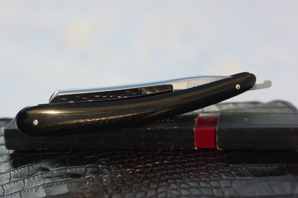 Re: Продаётся от Karangi C.V. HELJESTRAND. Слегка улыбчатая. Очень массивный эрль. 5\8. Обух 6мм. Кофр. Бритва в использовании не была. Потрясающий сохран.(прибл конец 19 в).Реставрировалась ручка из рога (чистка, полировка). Был поменян клинышек на оловянный ( стоял прессованный картон). На нижнем пине маленькая трещинка изнутри (проклеена). Превосходная заточка от Дядюшки Фантомаса.
