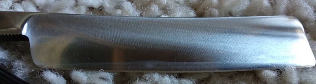Бритва в идеальном состоянии для своих лет. Разобрал, произвел косметическую чистку металла от патины, на тонких абразивах и снова собрал, поменяв пины на более надёжные, немецкие. Сталь чистая, без дефектов. Идеальная геометрия. Кромочка равномерна по всей длине и ее почти не видно."Поющая" при бритье и "звенящая" сталь способна выдавать очень приятное и мягкое бритьё.Немного укороченное полотно также будет удобно при бритье, нежели клинок стандартного размера. За счет своего достаточно толстого обушка бритва тяжелая, ощущается в руке , в связи с чем контроль при бритье более уверенный, не дающий часто резаться, особенно новичку. Сама по себе бритва компактная, с красивыми и изящными формами клинка, но в тоже время серьёзная, массивная, с прекрасной, качественной сталью.Заточена и готова к бритью.