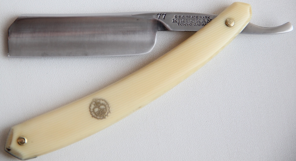 Я пользовал бритвы KIKUOKAN 1000, где была Тамахагане сталь на клинке. (В данном случае, по всей видимости, использовалась английская сталь, что гласят надписи на одной из коробок от 77-й модели. (Фото)