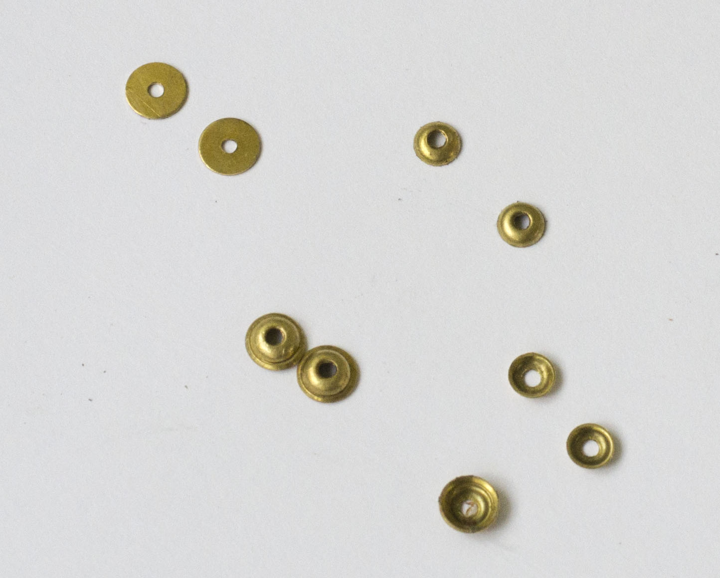 Re: Заклёпки (пины) для опасных бритв, установка, изготовленУ нас тоже получилось кое чего наформовать. Те что маленькие - по типу старых французских, Большие похожи на старый шеффилдский бычий глаз, хотя над ними еще работать - немного сыроваты. А вот французы из 0.4, 0.5 латуни можно ставить без всяких подкладок.