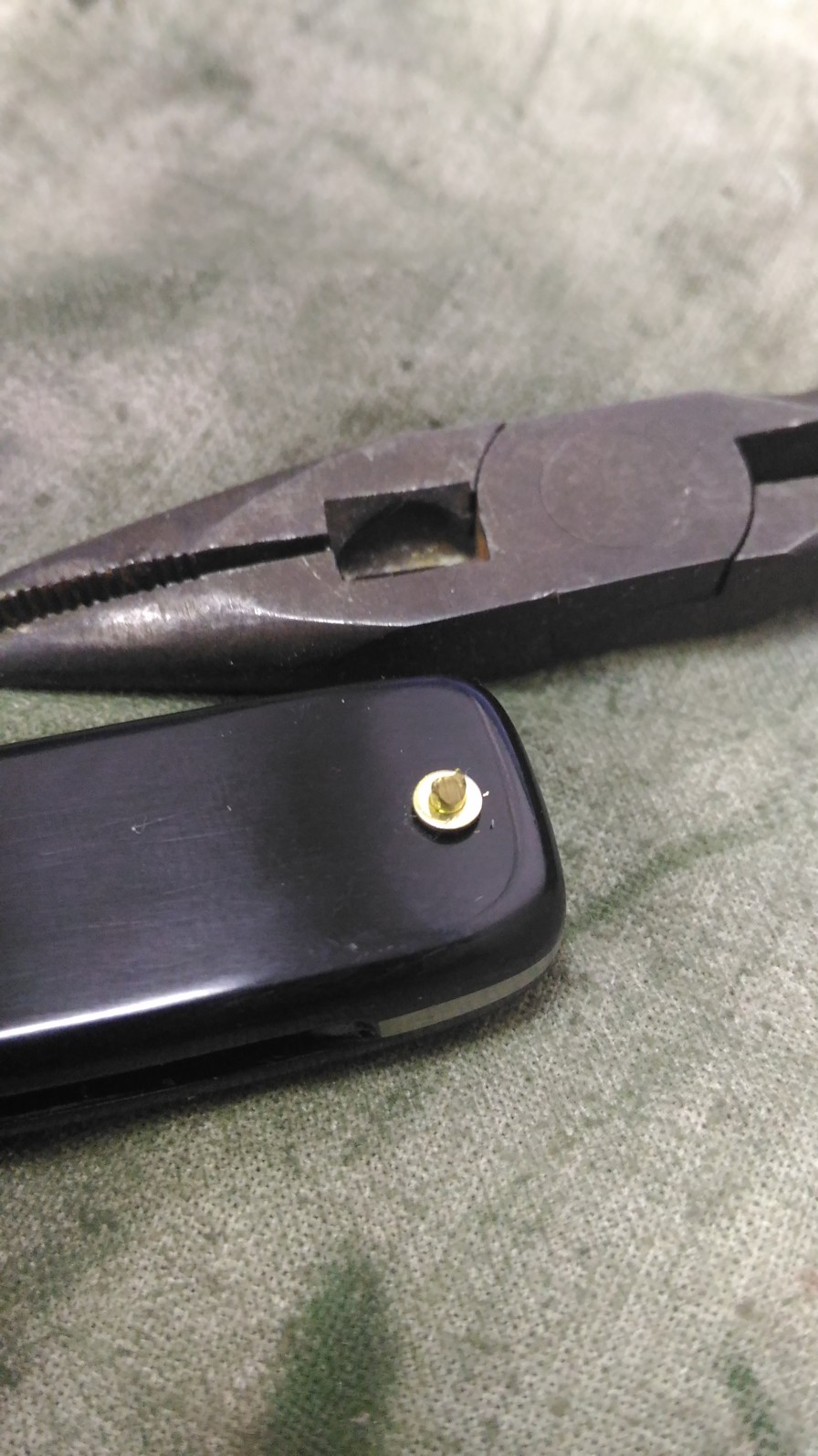 Re: Заклёпки (пины) для опасных бритв, установка, изготовленЧуть фото процесса установки пинов