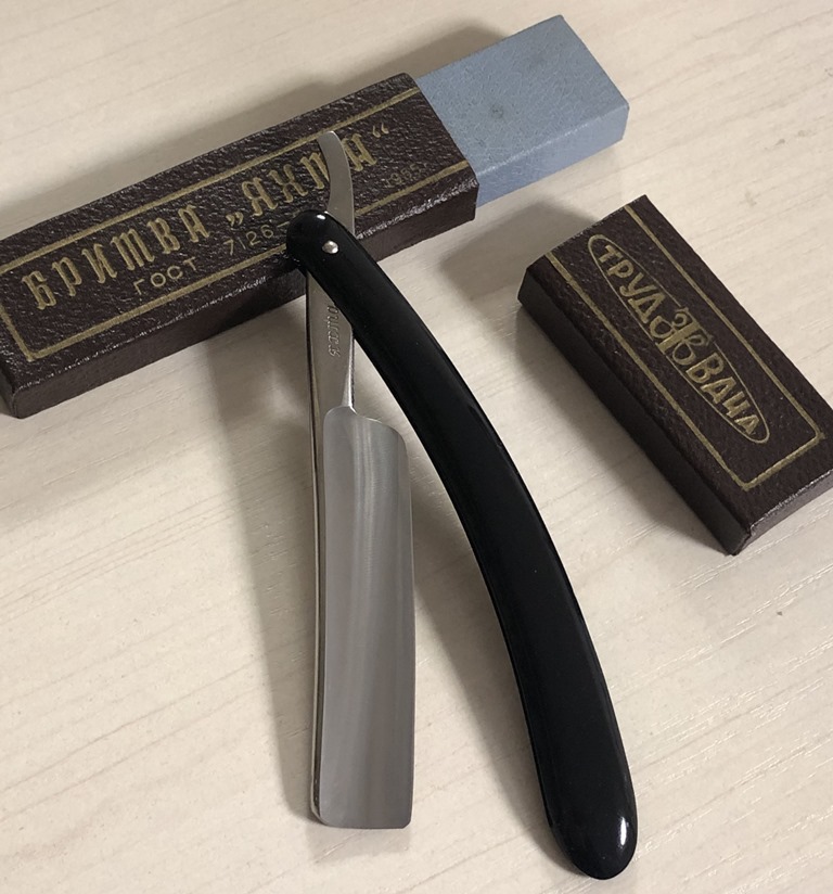 Хоть бритва и не была в пользовании, но пришлось разобрать и немного освежить металл, от разного рода "следов времени".Немного незначительных "точек" осталось на лицевой части полотна, но больше ничего не стал убирать. чтобы не нарушить геометрию.Попытался воссоздать оригинальный гринд и полировку. В общем и целом на вид состояние нетронутой бритвы.Пины также оставил родные.Красивая, редкая, оригинальная бритва, в идеальном состоянии.Сталь"звенящая", способная выдавать качественное и мягкое бритьё.Бритва практичная и перспективная.Можно сказать, на все случаи жизни. Подойдёт как новичку, так и опытному пользователю,за относительно небольшие средства.. Заточена и готова к бритью.