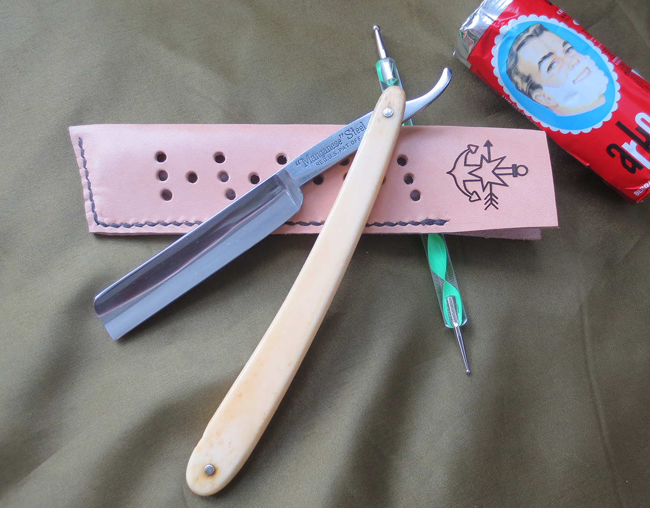 Опасная бритва SUPER WEDGE (супер клин) Shop Work G.D.Abrams & Son Wayland.N.Y. Углеродистая сталь, ширина лезвия - 13,5 мм, родная оправа из прозрачного зелёного пластика, заклёпки - латунь. Бритва в отличном состоянии, заточена на японских водных камнях и полностью подготовлена к работе. После заточки была продезинфицирована, направлена на чистом кожаном ремне и в использовании до её покупки гарантированно не будет. Чистая, очень вёрткая бритва, особенно рекомендовал бы её, из-за небольших размеров, не только для основного бритья, но и для ухода за усами и бородой. Также всегда в наличии ремни для правки и при покупке с ремнём почта по РФ за мой счёт. Цена - 3250 рублей.