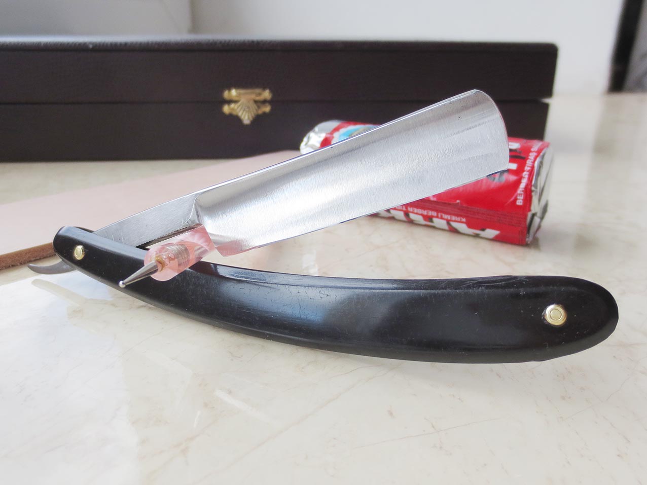 Произведена в 1954 году, углеродистая сталь, ширина клинка - 5/8 дюйма, изготовлена и установлена новая оправа из американского ударопрочного пластика, заклёпки - латунь. Инструмент заточен на японских водных камнях и полностью готов к работе. После теста был направлен, продезинфицирован и до покупки в работе гарантированно не будет! Рекомендую начинающим, как недорогой, но достойный вариант, для обучения и постоянного использования. Старый футляр видно почил в бозе и чтобы красавица не осталась без оного, приложу бонусом чехол для хранения из натуральной кожи ручной работы с перфорацией. Также всегда в наличии ремни для правки опасных бритв из кожи растительного дубления ручной работы, купившему бритву и ремень - доставка по РФ за мой счёт. Начинающим подскажу и покажу, как пользоваться и ухаживать за инструментом. Цена - 3500 рублей.