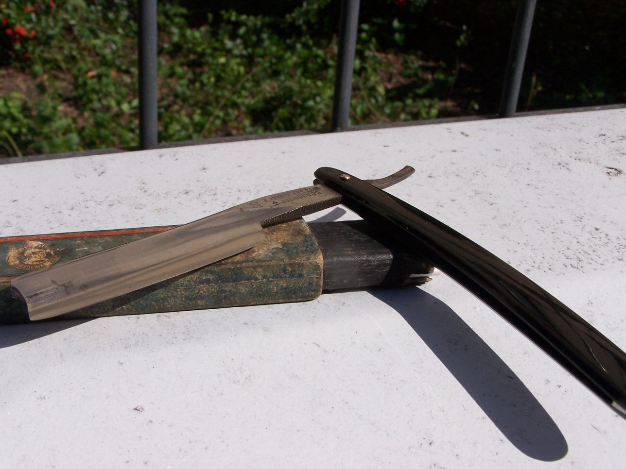 Коробка, похоже, родная, либо периода изготовления самой бритвы; шириной 4 см., под стать клинку, который в ширину являет собой полный дюйм., толщина обуха 7 мм.