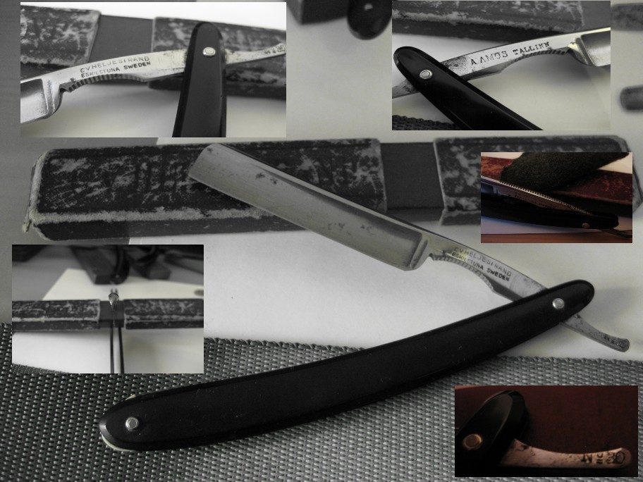 Поиск информации, прошу помощи.Купил бритву C.V.Heljestrand Sweden A.Amos Tallinn №30 (фото вставлено ниже) - прошарил эстонкие архивы и нашел: August Amos (оптическое производство и магазин, 20-40 года 20-го века). Известны - дата и место рождения из церковно-приходской книги, место учебы и дважды побег из эстонской армии, начало производства и открытие магазина, про дебоши в ресторанах и нецензурные высказывания в сторону бюрократии, о неуплате зарплаты рабочим и о травмах на производстве, даже номер машины известен (из списка автомобилистов 34-38г). Найдены сын и внучка, живущие сегодня в эстонии; с приходом советской власти August Amos добился получения советского гражданства (процедура оптации дошла до высшей инстанции), с последующей национализацией производства, торговых точек, имущества и даже двух унаследованных от родителей мыз (зажиточных хуторов), и еще много интересной информации. Других A.Amos-ов в эстонии довоенного времени не обнаружено.