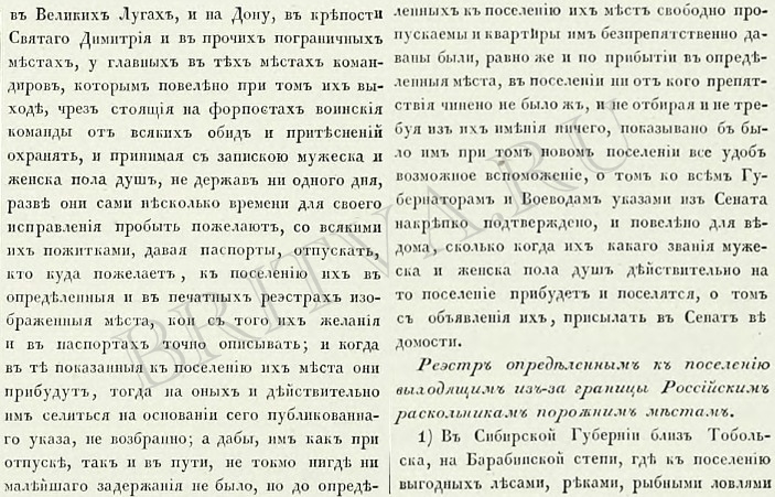 Императрица Екатерина II В интернете часто пишут, что указом от 6 апреля 1772 г., Екатерина II отменила пошлину/сбор на ношение бороды, но с оговоркой: „… государственные чиновники, военные и придворные должны были „оставлять лицо босым”! Более того, очень авторитетно, но бездоказательственно, утверждается, что именно поэтому, этот день принято считать в России Днем бородача. Это другое из белых пятен на карте российской истории, потому что в Полном собрании законов Российской империи за 1772 г. нет ни одного указа от 6 апреля. За месяц апрель, и за весь 1772 г. нет указ, который отменяет налог на бороду! Также, с 1762 г. по 1774 г. нет указа, в котором написано, что „… государственные чиновники, военные и придворные должны были „оставлять лицо босым". Может быть, был такой указ, но он не сохранился до наших дней. В таком случае откуда же взялся текст „… оставлять лицо босым"? Я задал этот вопрос и попросил найти текст этого указа или другого документа: - директору Института российской истории Российской академии наук; - декана исторического факультета Московского государственного университета; - директору Института истории Санкт-Петербургского государственного университета; - деканов исторических факультетов Тверского, Омского, Воронежского, Ярославского и других государственных университетов. Большинство из них любезно ответили, что вопрос очень интересный, но они не встречали такого указа и пообещали поискать информацию. Один из ученых высказал странную гипотезу, которую я опроверг официальными документами. И все, больше ни ответа, ни привета. Это было два месяца назад. Итак, я продолжаю показывать сохранившихся документов. Екатерина II, указом от 14 декабря 1762 г. разрешила раскольникам беспошлинное ношение бород. Ученные считают, что именно этим указом Екатерина II отменила пошлину/сбор на ношение, но сам запрет на ношение бород остался для государственных чиновников, военных и придворных. Фото №29: Екатерина II, 1762 г. Указ № 11725. - Декабря 14. - О позволеніи раскольникамъ выходить и селиться въ Россіи на мѣстахъ означенныхъ въ прилагаемому у сего реэстрѣ. (На фото № 31 я подчеркнул интересующий нас текст). Фото №30: продолжение указа № 11725 Фото №31: продолжение указа № 11725 Фото №32: продолжение указа № 11725 Фото №33: продолжение указа № 11725 Фото №34: Екатерина II,1764 г. Указ № 12067. - Марта 3. – О учиненiи вновь переписи незаписавшимся потаеннымъ раскольникамъ и о положенiи ихъ въ окладъ. Этим указом Екатерина II во второй раз подтверждает, что разрешила раскольникам беспошлинное ношение бород. (На фото № 35 я подчеркнул интересующий нас текст). Фото №35: продолжение указа № 12067 Фото №36: Продолжение указа № 12067