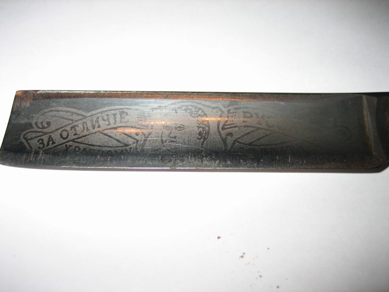 Прошу Вас оценить данную бритву. Она интересна тем фактом, что на ней написано "За отличие русскому храброму солдату". Заранее спасибо.