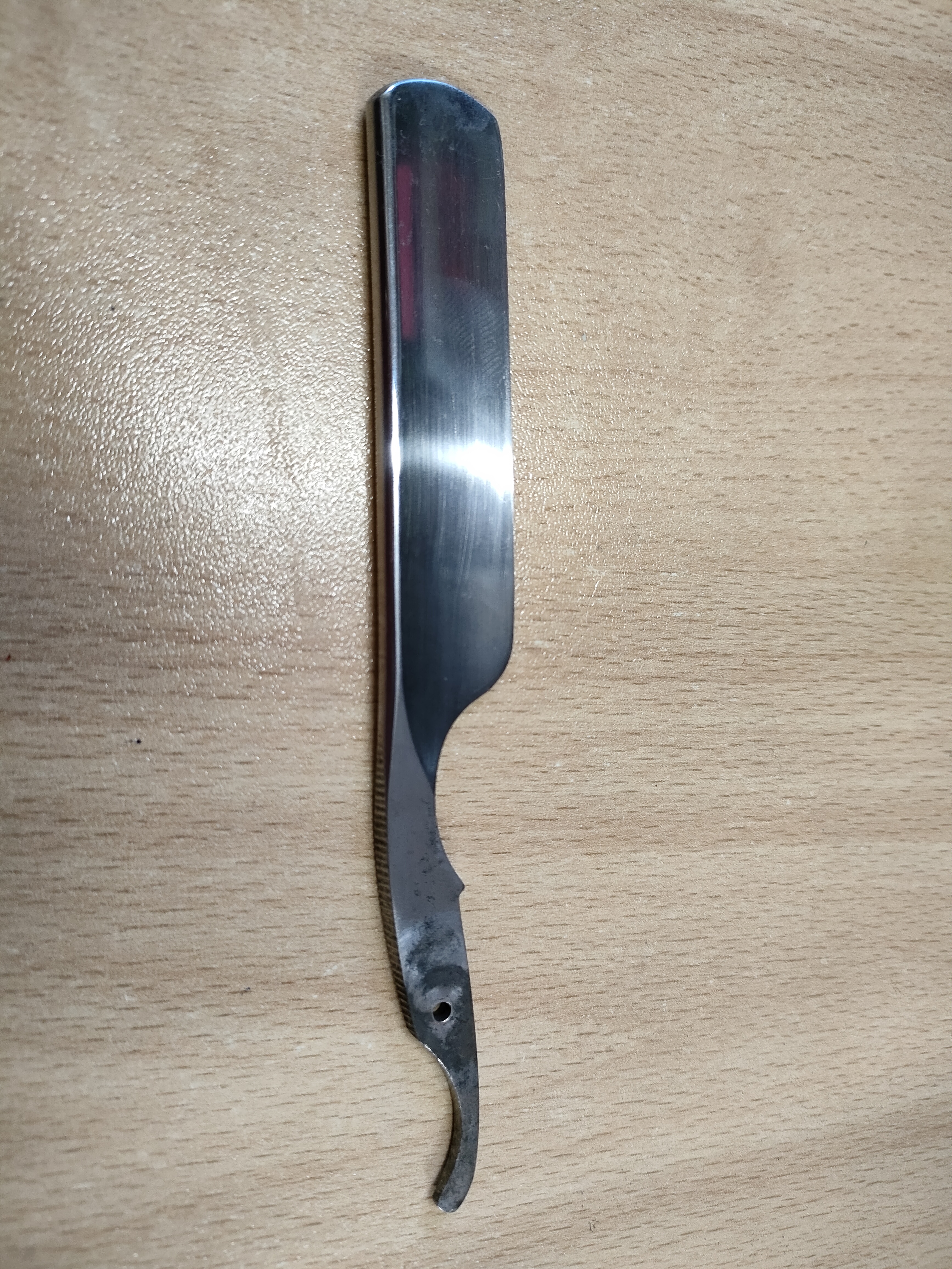 Veritable Dumas ©Пожалуй так. Бритва похоже даже не точеная, я когда взял её первый раз в руки уронил клинок на палец, оказалось пин ужасно расхлябан. Аж похолодел, думаю сейчас кровью все залью, по факту даже не порезался. В защиту продавца могу сказать что он видимо ничего в бритвах не понимает, продал очень дёшево, с доставкой 40 долларов вышло. Да 20 вернули по спору. Я и брал то дешёвую чтоб поэкспериментировать с восстановлением, да попробовать заточить как смогу на обычных китайских камнях. В результате, уж простите мне такой вандализм, наточил что бреет волосы на руке, на лице не пробовал Огромное спасибо за информацию
