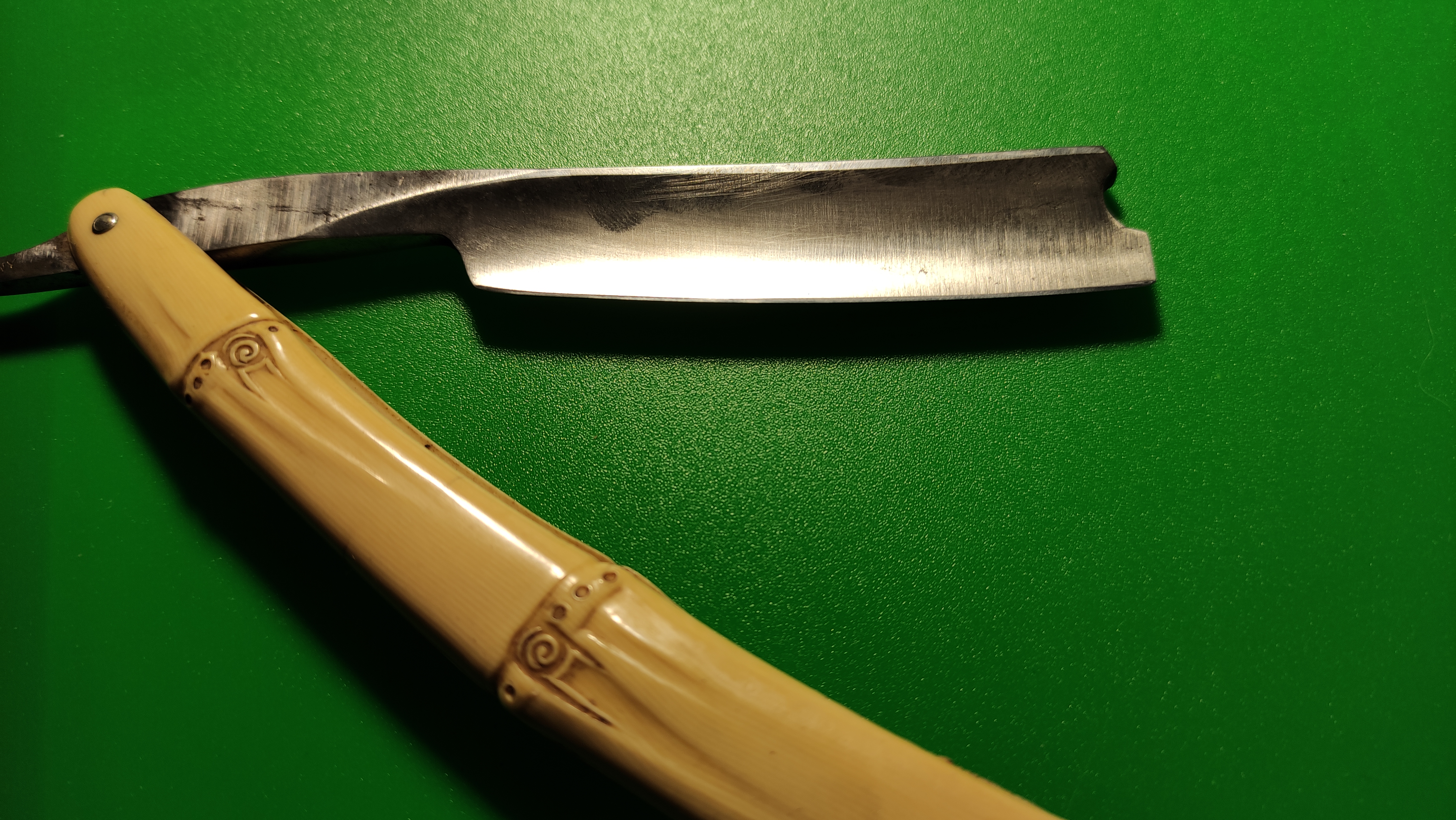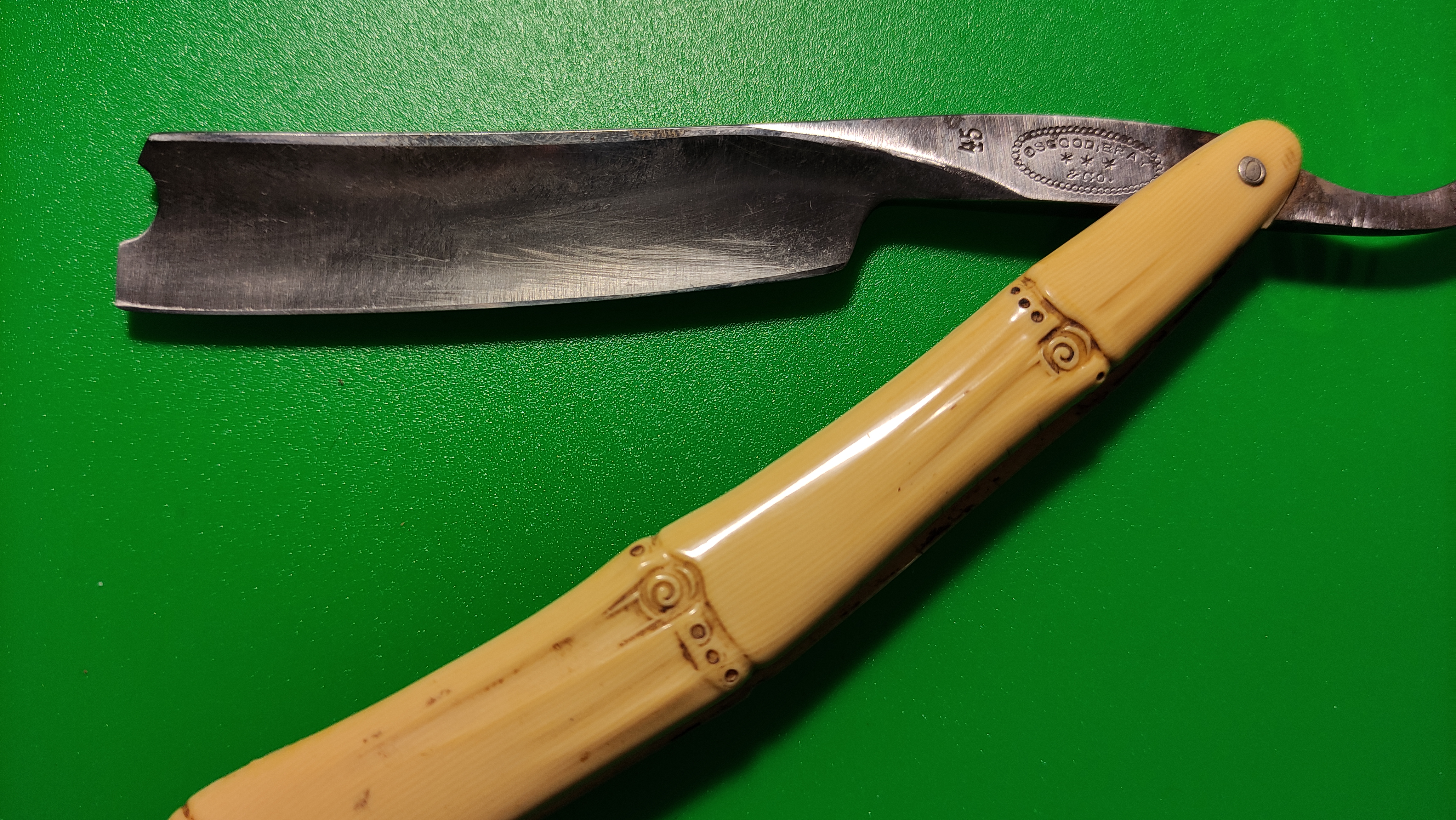 Принесли мне на заточку данный инструмент, заточил и хочу снять видео бритья с ней. По ходу сделал вывод, что бритва с немецкими корнями производилась для американской фирмы