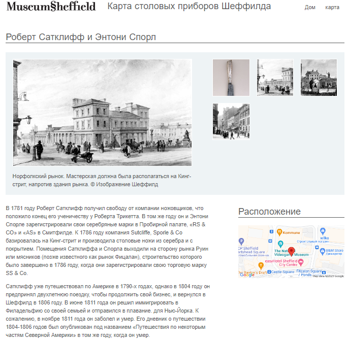 Роберт Сатклифф был сыном Авраама Сатклиффа (ум. 1799), известного врача из Сеттла и Парадайз-сквер. Роберт родился и получил образование квакером. В 1772 году он поступил в ученики к ножовщику Роберта Трикетта из Pack Horse Hill и получил свободу в 1781 году. Он зарегистрировал серебряные марки у Энтони Спорла в Смитфилде. В 1786 году Sutcliff, Sporle & Co зарегистрировала торговую марку SS & Co на Кинг-стрит. Были изготовлены столовые ножи из серебра и с покрытием. К 1797 году Роберт был партнером своего брата Джошуа в качестве торговца и производителя столовых ножей в Уикер (с резиденцией на Аллен-стрит). Их торговой маркой было слово «ПУНКТУАЛ». В 1804 году Сатклифф отплыл из Ливерпуля в Нью-Йорк — морское путешествие длилось восемь недель. Америка была излюбленным местом для квакеров, но Сатклифф (который уже побывал в Америке в 1790-х годах) предпринял поездку «исключительно с коммерческими целями» (Sutcliff, 1815). Он вернулся в Шеффилд в 1806 году только для того, чтобы снова отплыть в Нью-Йорк в июне 1811 года. Он взял с собой свою семью, намереваясь навсегда поселиться в Филадельфии в качестве торговца. Однако он простудился и умер там 11 ноября 1811 года. В том же году было опубликовано его « Путешествие по некоторым частям Северной Америки» - публикация, использованная Armytage (1950) для краткого описания жизни Сатклиффа.