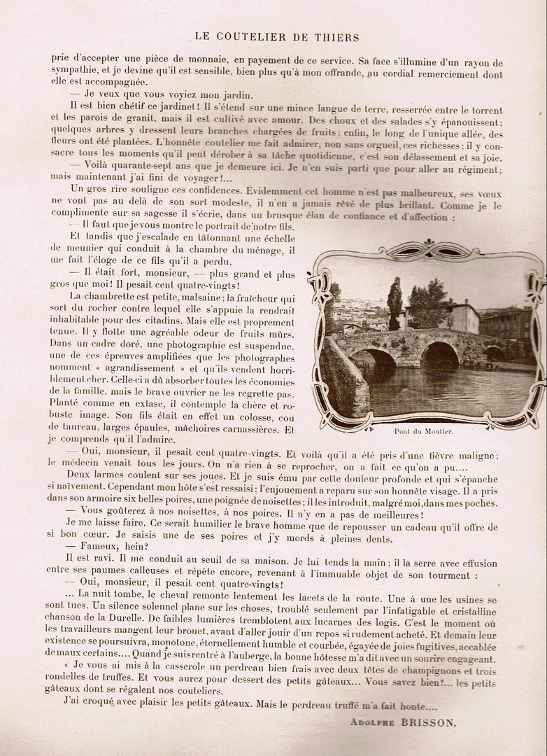 В номере газеты L'ILLUSTRATION за 1899 год мы находим этот вкусный отчет о поездке в Тьер чистого горожанина, который, кажется, считает всех сельских умственно отсталыми! дружелюбно, конечно, но вряд ли цивилизованно!