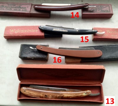 Так как последние 3 года я вообще не следил за ценами на рынке, прошу корректировать ценники, если я некорректен в ценообразовании. Фото делал родственник, далёкий от темы бритья клинковой бритвой. Поэтому всем бритвам присвоил номера и краткое описание из того, что помню сам. При наличии интереса к покупке - попрошу человека открыть бритву и сделать подробные фото со всех сторон.