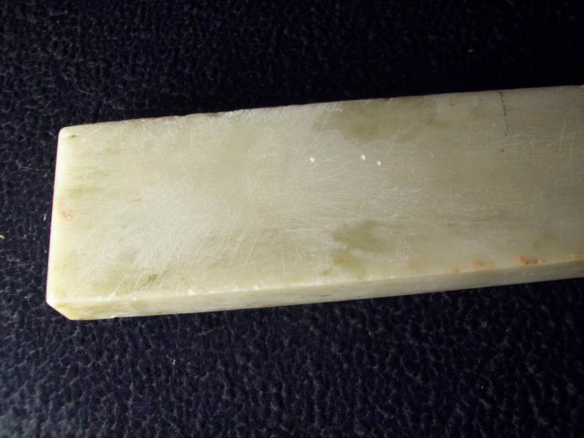 Также есть некоторое количество породы белого, без включений, цвета, самого "раннего" слоя по добыче (из участка, который был открыт в 20-е годы ХХ века). Это самый абразивный слой, работает очень быстро в сравнении с Soft или Hard арканзасом.