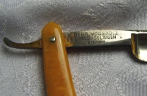 "Gebrüder Voosholz, Wald bei Solingen in 1922 and 1925, Solingen-Wald, Schnepperter Strasse 14 in 1939. Brand names: 'Geroso', 'Gevoso'. Open-blade razor maker."