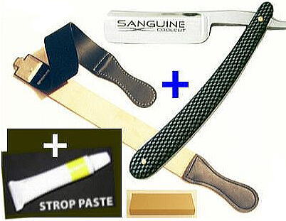 Занесло в Альбион по простому - шарил на ebay в поисках бритв подешевле (опыта у меня никакого в опасках, попробовать негде, так что решил самый дешёвый вариант взять). Критерии выбора тоже несложны - без ремня никак, а если понравится нужна будет паста. Покупать в разных местах - затраты на доставку большие, так что делал поиск по STRAIGHT CUT THROAT STROP PASTE (для англичан) и rasiermesser (для немцев, тут я в языке не силён - по картинкам ориентировался). Забавно, что англичане термину "Straight razor" предпочитают "STRAIGHT CUT THROAT".