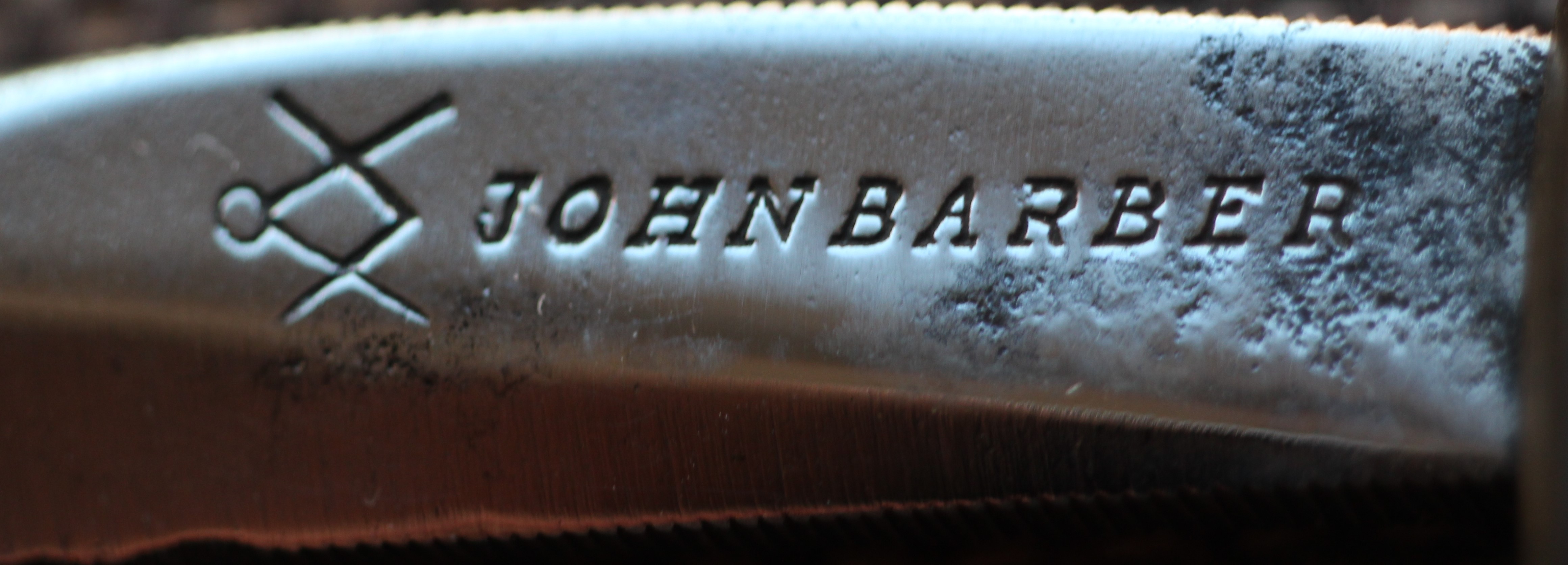 John Barber was apprenticed in 1802 and gained the Freedom of the Guild of Cutlers in 1823. Being granted Freedom practically means he had served his apprenticeship and practised as a journeyman cutler for a period, before establishing his own mark (the compass and square). However, his company was making cutlery and flatware in the 1820s and strops and razors by the time he acquired his freedom, so there must be some sort of reason why there is such a large gap between apprenticeship and freedom being granted. In 1823 the company was at 29 South Street, Sheffield, before moving to Norfolk Street in 1828. After his death in 1834 the company continued as John Barber & Son. In 1839 they were also advertising themselves as successors to George Shepherd and were using the well-known Shepherd 'Wolf' mark - which was used by a variety of makers.