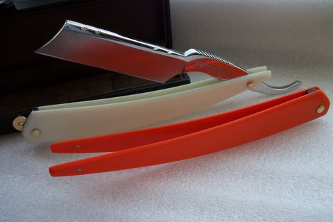 Совсем недавно получил сделанный Максом эксклюзив. Классная бритва, отличная балансировка, приятно и удобно бриться. Да и внешне симпатичная. Замечательный подарок себе любимому. По качеству бритья могу сказать следующее. Присоединиться к клубу любителей бритв Макса не спешу. Почему? Наверное потому, что ничем меня Макс не удивил. С большим удовольствием бреюсь его бритвой, но прекрасно понимаю, что та бритва, которой брился раньше и те бритвы, о которых написал в теме http://www.britva.ru/forum/viewtopic.php?f=6&t=2893" onclick="window.open(this.href);return false; бреют столь же чисто и хорошо. Только вот стоят в разы дешевле. Так что, как говорили древние греки, "шире жопы не пернешь". Немного грубовато, но из цитаты слова не выкинешь. Прошу пардону у администраторов. Иван, никаких огрехов у Макса нет. Мастер замечательный. Лезвие двигается в ручке мягко и плавно. Безупречная работа. Даже ручку запасную для меня сделал, на всякий случай. Надоест белая, поставлю оранжевую. Эксклюзив есть эксклюзив.