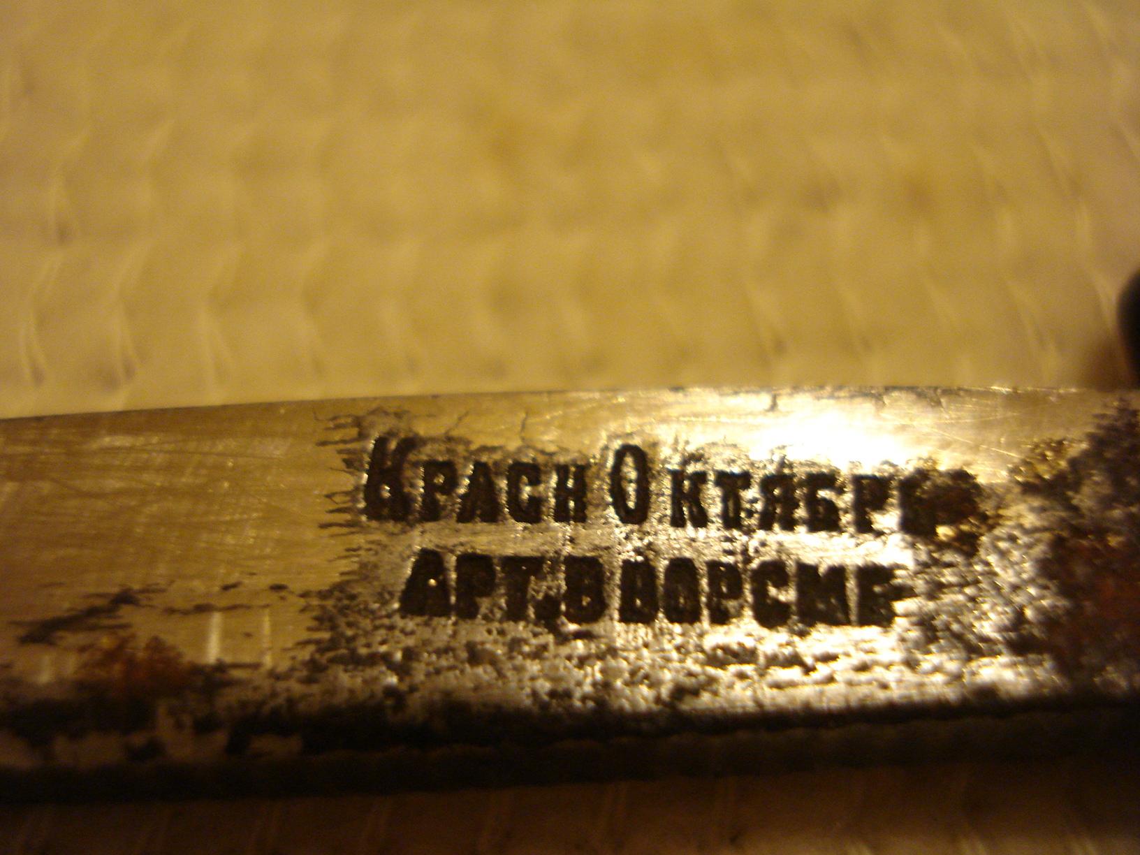 Вот здесь http://www.britva.ru/forum/viewtopic.ph ... 799890b6f7 в топике Archimedes была информация о клейме Ворсминской артели Красный Октябрь, фото для возможного поддержания и развития темы.