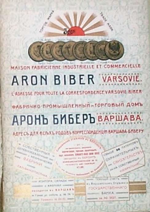 ТД Аронъ Биберъ Варшава Отпечатана рекламка в 1908 году Spoiler Show