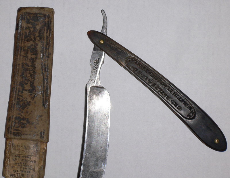GEO SAVAGE&SONS double x razor Провери по каталогам выпускалась с 1841 по 1842 т.е. бритовке 170 лет Но и состояние ее соответствующее... Бритва поражает своей монументальностью - т.е. это то что называется у них дабл х, т.е. размер два икса по русски. Бритва с лезвием без впуклости т.е. в сечении почти ровный клин. Режущая кромка покоцана достаточно сильно, покрыта равномерным слоем оксилов металла, но не коррозией. Ручка судя по всему из протравленного рога с выжженой надписью, либо только первые попытки производства пластика ибо я таких пластиков ранее не видел. Кстати клинышек между двумя половинками ручки бритвы из металла - что очевидно крайняя редкость. Само лезвие имеет ширину 22 милиметра ну или 7/8 дюйма. Вогнутости почти нет. Обух толстенный. За счет всего этого вес просто огромный - но вешать нечем. Вот возник вопрос о ремонте или реставрации или епределке в новодел так сказать. Т.е. само тело позволить из него сделать абсолютно любую бритву, да и ручку можно приделать намного интересней и лучше, НО теряется вопрос аутентичности. И даже формально удаление патины снимает цену оригинала. Также режущая кромка весьма покоцана и это решить не трудно переточкой, но тогда опять следы вмешательства отсанутся... Вот и вопрос делать или не делать? что нибудь с ней ЗЫ Эргономика у нее никудышняя Держать просто неудобно - грани впиваются в руку и палец в выемку не встает. На фотках также видно что осталась половинка от коробки. Оригинал тут http://www.razor.su/forum/index.php?topic=28.0