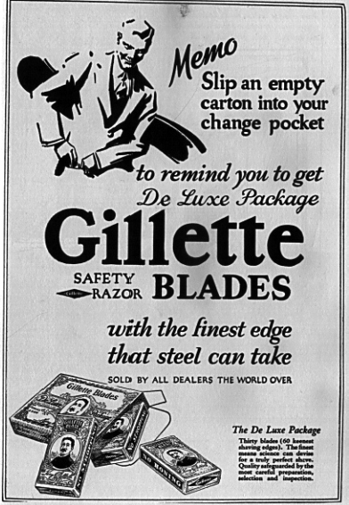 «После этого памятного совета изобретение нового товара повседневного спроса с непродолжительным сроком использования превратилось для меня в навязчивую идею, – вспоминал Жиллетт. – Я перебирал в памяти почти все человеческие потребности, все сферы деятельности человека, но безрезультатно».