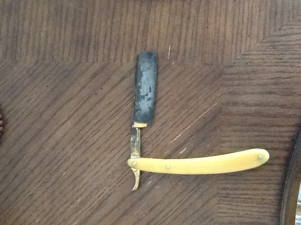 Сказано - сделано! На просторах Интернета нашёл Ваш сайт и , как говорят Ваши "курил" его несколько дней. Вооружённый нечеловеческими знаниями, почерпнутыми на Вашем уважаемом форуме пошёл на местный блошиный рынок и купил пару бритв попроще( чтобы не жалко было выбросить, если сын пару раз порезавшись бросит эту затею). Ими оказались "Гравюра" в футляре Яхта( Труд Вача) и ещё одна "Гравюра" в родном футляре.,1963г и 1958г соответсвенно . Немного посомневавшись( в нашем городе, да и стране, пожалуй, нет сертифицированных Вашим Форумом, заточников), я выбрал одного парня, который неплохо точил ножи ( в моем случае, кухонные ). Я, думаю, у многих эти строки вызвали улыбку, но , что есть - то есть. Заточник точил их неделю. Я пришёл с группой поддержки , в лице сына и его друга и охапкой волос в руке проверять качество. У нас срезать волос не получилось, но сам заточник стоял рядом с кислым выражением лица и вырвав из своей головы волосы, не с первого раза, но разрезал их(его), не знаю как правильно. В смысле, по "науке", держа двумя пальцами на весу , но не в 2-3 см от края, а, все-таки ближе к захвату. Когда я с ним расплатился, он заметно повеселел и сказал, что в курсе как проверяется острота бритвы, и что на заточку каждой у него ушло по два часа ( у него там ещё станок какой - то) и, что он делает все по науке. Вообщем , расстались мы с ним , почти, друзьями. Я торжественно вручил сыну бритву....., но беда пришла откуда не ждали! В виде родственницы моего сына, являющейся по совместительству моей женой. Она заистерила:-" Не хватало рожу разрезать ребёнку ! Он сам не знает что хочет! " и т.д. Торжественность момента была обос.., извиняюсь, смазана. Я с досады сплюнул и оставил себе эти бритвы. А, вообще, все это затевалось для чего? А вот для чего! У меня в ванной валялась года три бритва ( подозреваю, что неплохая), а до этого в футляре, в шкафу. Я ещё когда покупал подумал:-" футляр, что ли сборный? Разноцветный какой-то." Ну, она вся в золотых логотипах и т.д. Так вот, решил я года три назад подправить себе виски, а бритва тупая. Взял я её и отнёс заточить мастеру ( кстати, тому же, кто точил Гравюры). Но он только провёл войлоком по полотну и золотой логотип стал стираться на глазах. С криками "стой!", " стрелять буду!", его остановил, бритву аккуратно ( как мне тогда казалось), самый краешек заточил и пришёл домой равнять виски. Конечно, сразу порезался. Бритву ополоскнул и засунул в стакан в ванной и забыл про неё . Если бы не сын, так и валялась. Почитав в интернете решил, пусть научится, вернее не научится - пусть попробует на простой бритве. Не остынет, подарю ему хорошую. Достал свою старую бритву, а там ,,,, ржавое пятно, на полотне, как капелька. И тут начинается самое интересное . Стал я "курить"Ваш Форум , на предмет убрать ржавчину. Где то прочитал, что хорошо рыбий жир. Достал рыбу горячего копчения, натер всю бритву и для закрепления результата , обернул полотно бритвы в кожу этой форели. Завернул все в целлофановый пакет и забросил на шкаф, в кухне. Недели через две достал, развернул пакет( ну, понятно, Шанель!), но УЖАС эта рыбья кожа присохла к полотну и какие-то наросты и разводы не оттираются!!) . Опять Форум. Кока-кола!!! На сутки! Сделал. Е П Р С Т !!!!! Лезвие стало черным!!! А наросты и разводы как были так и остались. Хотя я тёр их разными марлевыми тряпками. Приятель посоветовал отбеливатель кухонны