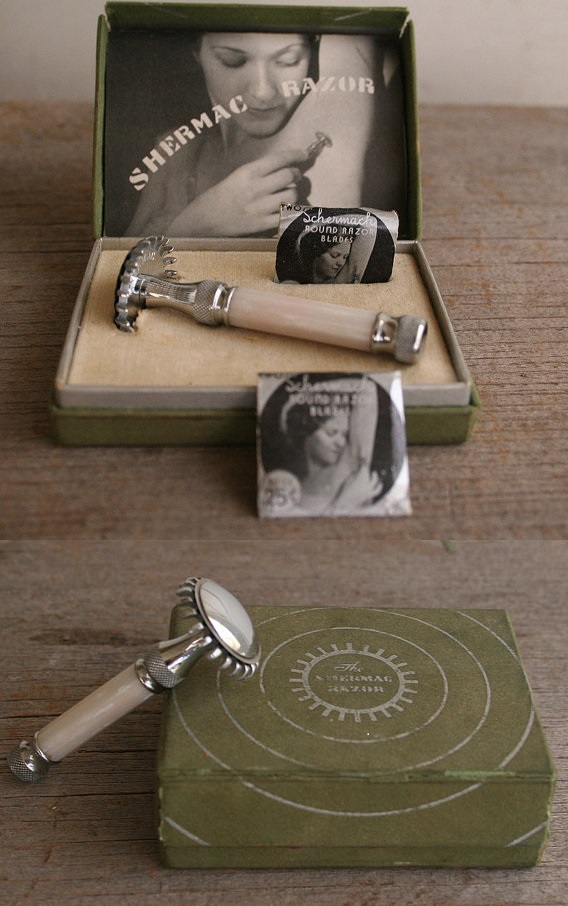 А вот еще одна попытка сделать чисто дамский станок со своеобразным дизайном. 40е годы: