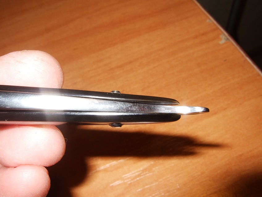 Итак, старый англичанин. Если смотреть сверху на обух, то у бритвы вся задняя часть (хвостовик + часть эрла) имеют клиновидный профиль. И в месте, где в бритве проходит ось, ее стороны вообще не параллельны - у нее там клин с нефиговым таким градусом. Половинки рукоятки (по-видимому целлулоид) довольно эластичные и немного изогнуты, как лук. Когда бритва открывается, то этот клин раздвигает с натягом самые кончики рукоятки (за осью) и тем самым ими же фиксируется очень плотно. В то же время середины рукояток сдвигаются, и уже получается, как будто этот лук выгнули в обратную сторону. Но когда бритва закрывается, то эта ее клиновидная часть ничего не раздвигает (рукоятка без всякого давленя огибает клинок), все это жутко люфтит и при закрытии режущая кромка почти всегда сталкивается с рукояткой. Я вертел в руках все это дело и мне подумалось, что если добавить третий пин, миллиметров 25 от оси (лишь бы хвост проходил), то он прижмет половинки рукоятки так, что и при складывании клиновидный эрл (если можно так выразиться) будет входить с натягом. При этом клинок центруется между рукоятками и бритва складывается правильно. Мне даже показалось, что это, возможно, не оригинальная рукоятка, а у оригинальной и было три пина. Но щас загуглил эти бритвы, гугл выдает фоток немного, но там везде два пина, как обычно. А может быть просто ось должна быть заклепана плотнее и тогда, учитывая, что рукоятка относительно гибкая, то она как-то с этим клиновидым профилем хвостовика будет нормально сосуществовать - сгибаться-разгибаться постоянно? Но мне кажется, что и в этом случае, и в моем гипотетическом варианте с дополнительным пином рукоятка будет постоянно терпеть лишние нагрузки. Или может быть нужно посадить на ось с хитрыми же клиновидными шайбами? Но это звучит чересчур сложно. В общем подскажите, как это должно быть правильно? Я новичок в этом деле и бритв вертел в руках всего-то пару. А это и не знаю по каким словам гуглить. Большинство бритв, как я понимаю, в месте оси плоские. Бритва - Taylor eye witness - The Favorite.
