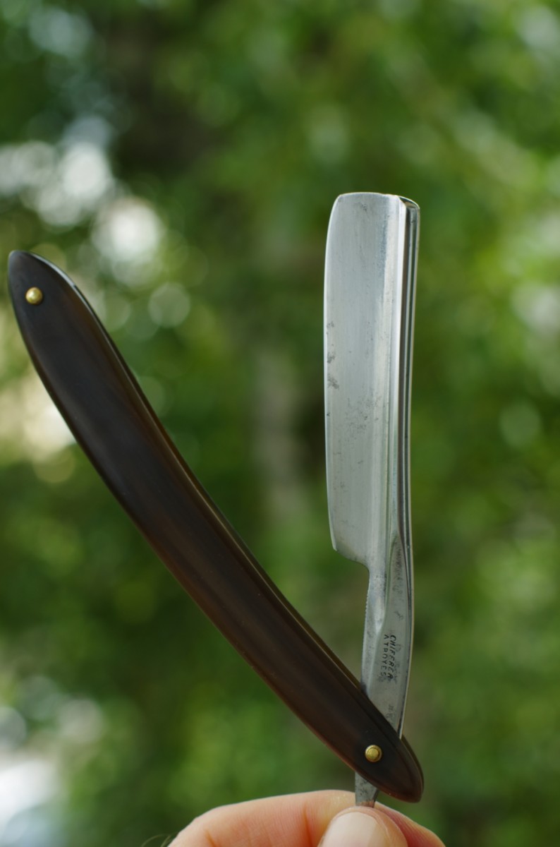 4. Французская бритва Chiffrer A Troyes, форма клинка – faux фрэймбек, оправа новая (рог, установлены внутренние шайбы), ширина 19мм в самом широком месте, обух 5,5мм. УШЛА по обмену.