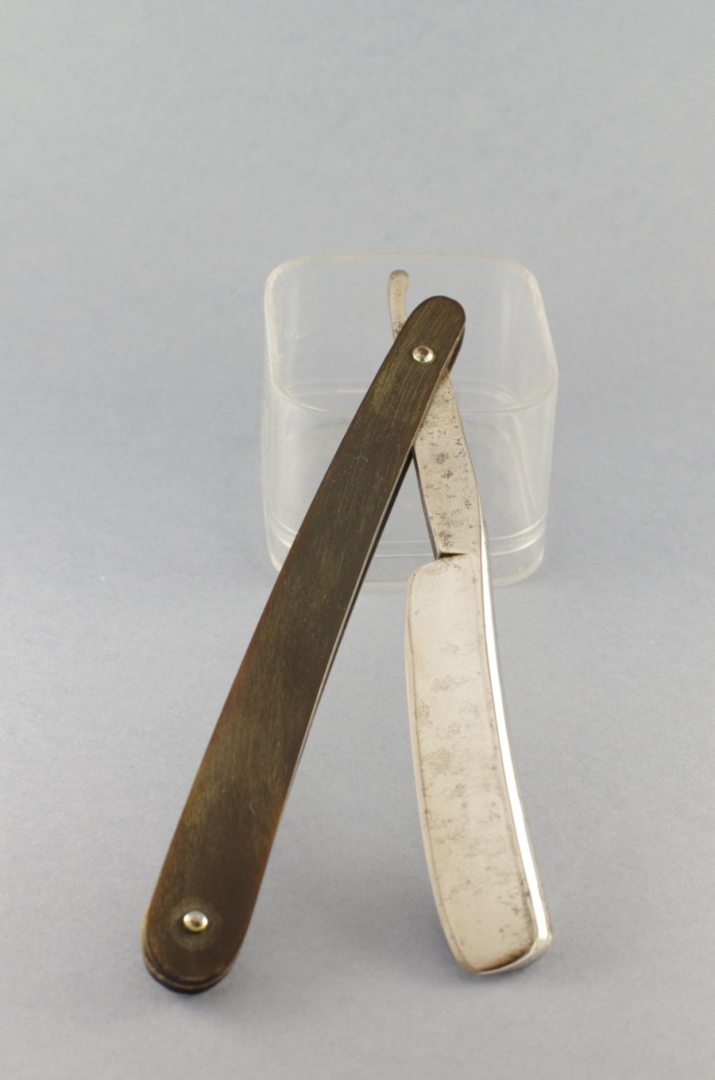 2. Немецкая бритва Gebr. Schwarz & Co, Haan Solingen, в родном потрепаном футляре, ширина 15мм, обух 4,2мм, оправа – рог (переставлена с другой бритвы, установлены внутренние шайбы), удобная насечка с двух сторон эрля. Цена ПРОДАНО на другом ресурсе.