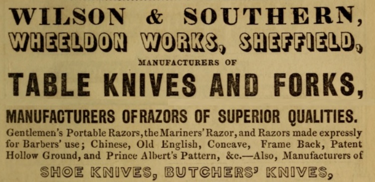 1845, какая-то книжка про Шеффилд. реклама Wilson & Southern Patent Hollow Ground Патентованная вещь, оказывается. Значит есть точный ответ!! Надо искать))