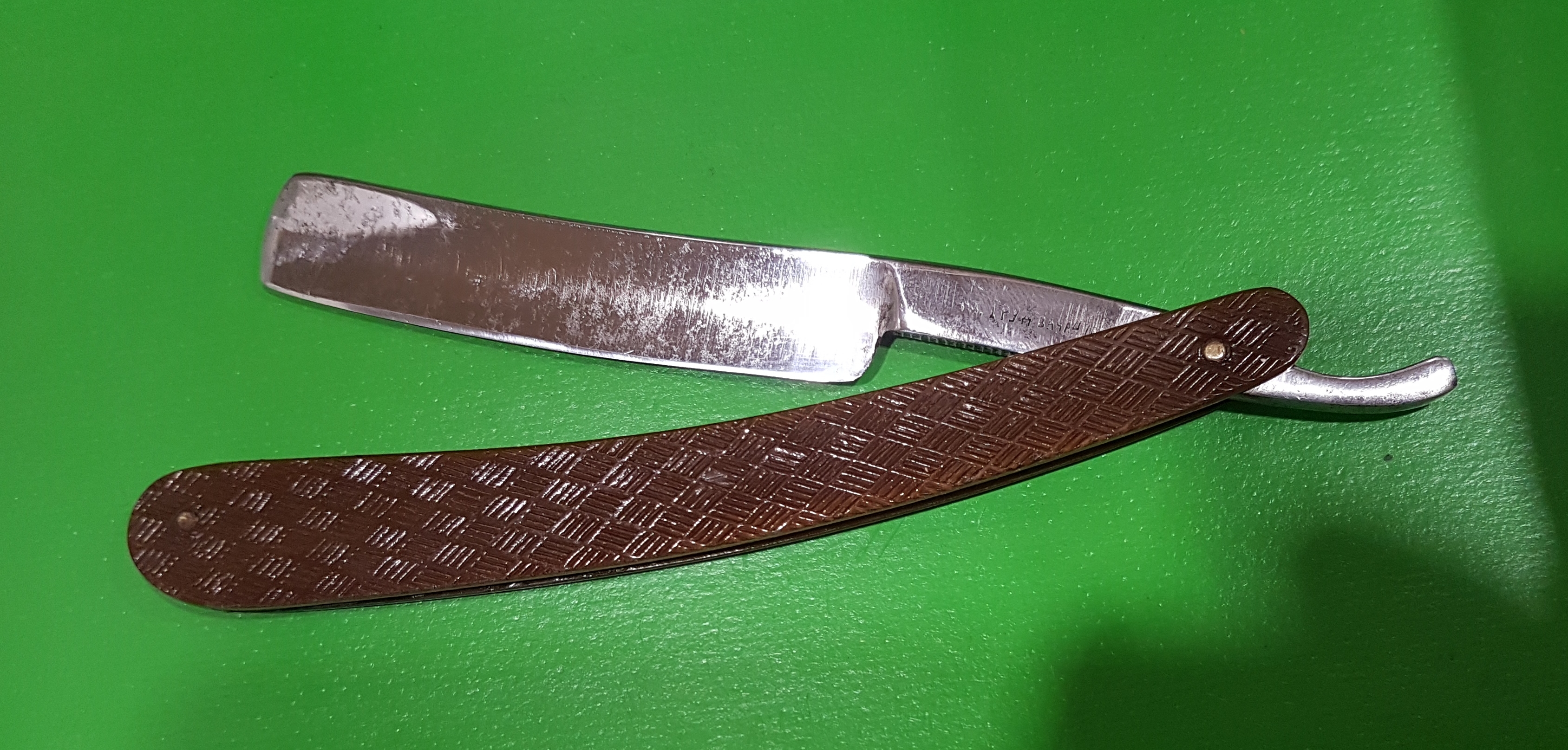 1947 г. выпуска. Родная ручка и пины. Следы времени оставлены намеренно. Неплохая геометрия ,ровная РК. Бритва заточена на японских натуральных камнях. ПРОДАНА Spoiler Show