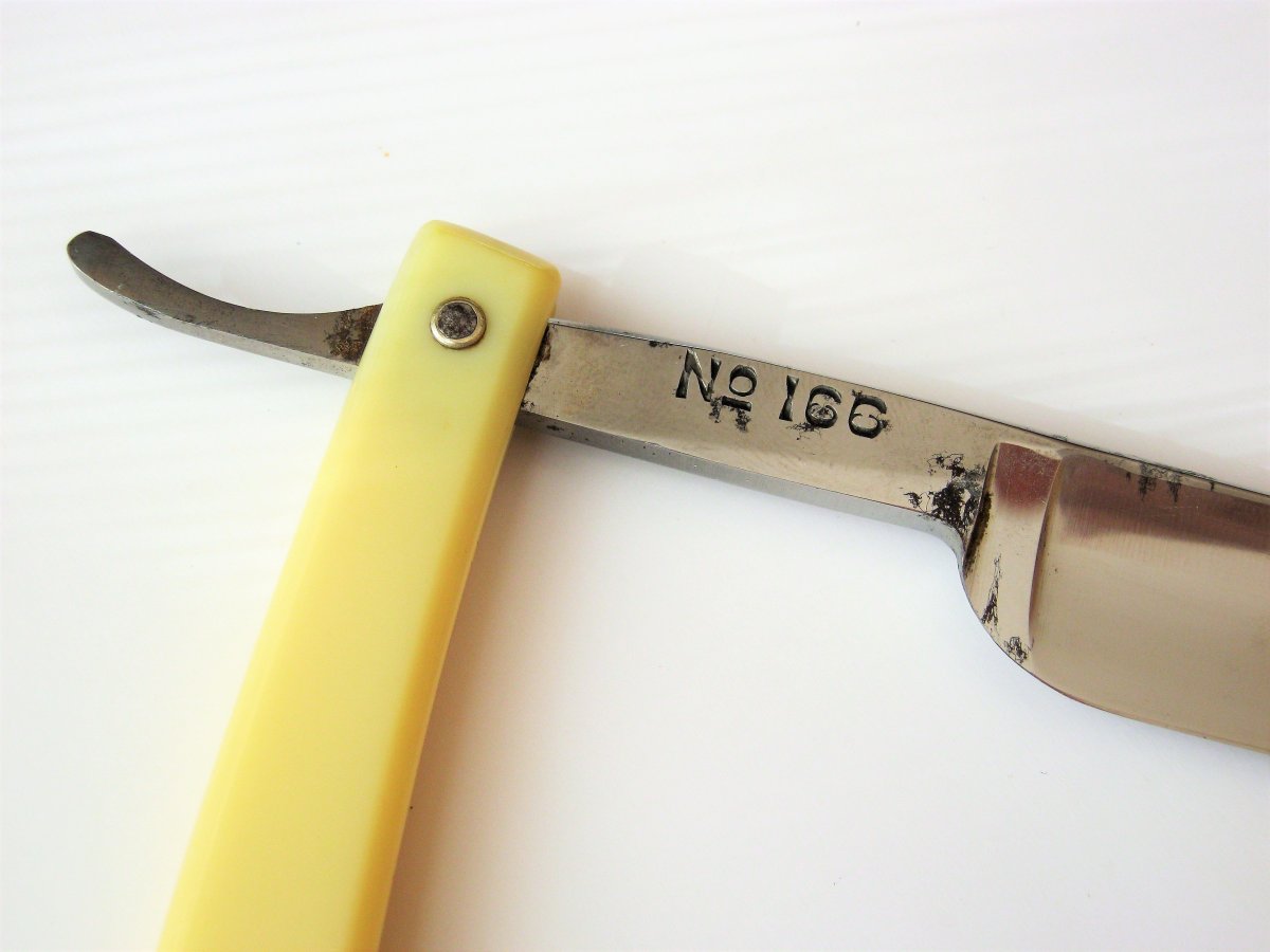 А состояние вполне приемлемое. Спина целая - заточить можно без труда. Почистить слегка. Сильно драить и полировать не стоит - американская сталь и так так себе. Если долго чистить-полировать, то есть риск, что лезвие треснет или отколется потом, если даже слегка при бритье задеть что-нидь твёрдое (раковину или кран). А так - нормалёк. Хорошая винтажная бритва вроде с виду. Для начинающего - самое то. Все будут одинаковы в гробу.