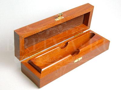 Искусно изготовленный из твердых пород дерева футляр ручной работы отлично подходит для хранения опасной бритвы. Помимо ярко выраженных эстетических качеств, футляр довольно практичен: толстые стенки защищают набор бритв от влаги и пыли, а дерево является материалом, отлично абсорбирующим влагу. Для более плотного и надежного крепления в футляре предусмотрен кожаный коврик. Надёжные металлические петли позволят изделию служить долгие годы. Замком служит маленькая резная позолоченная защёлка.