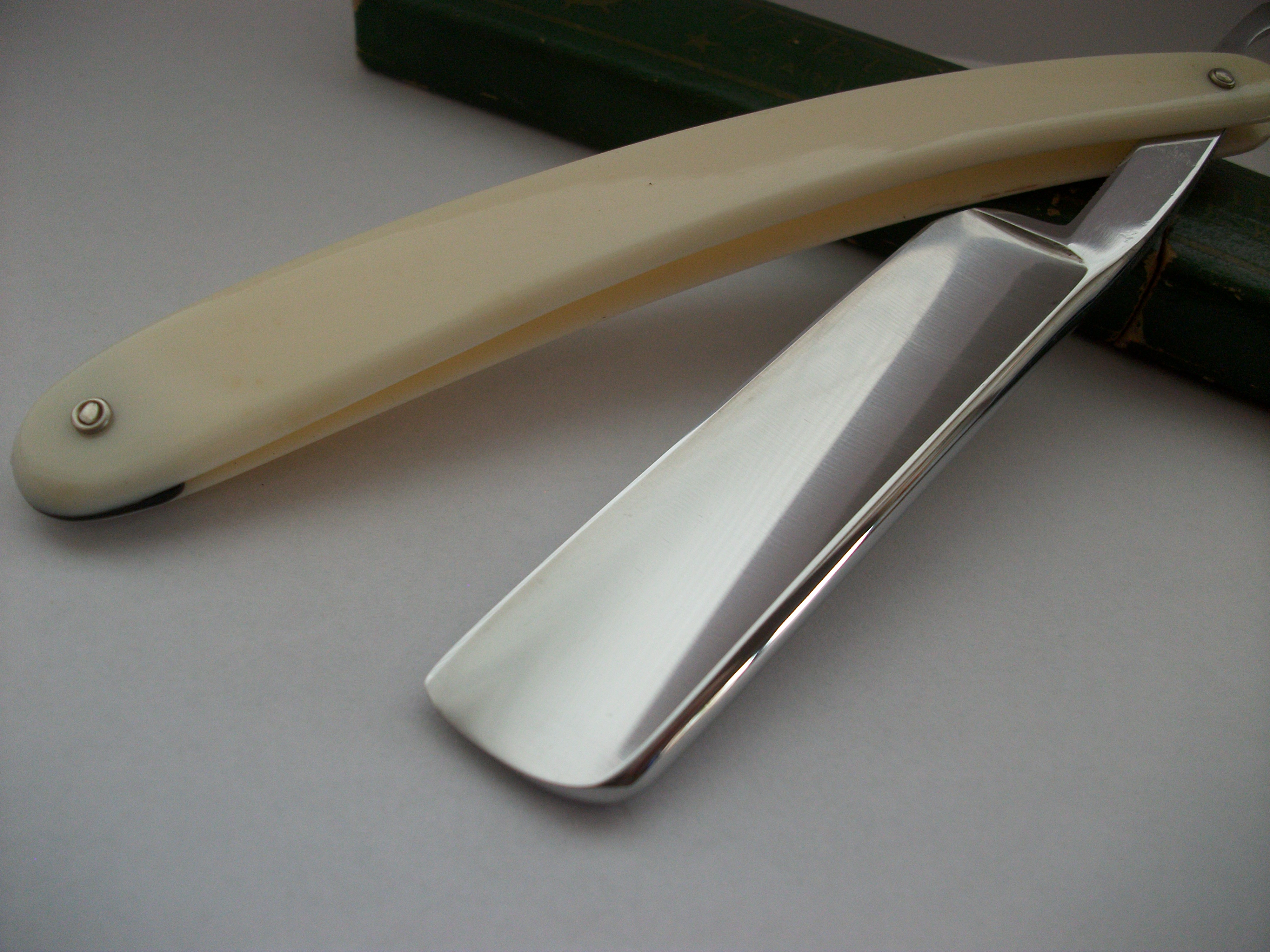 Продается от mister maloi C.V.Heljestrand Le Duc Углеродистая сталь, ширина полотна 15мм, длина режущей кромки примерно 70мм. Полотно в хорошем состоянии - родной сатин и травление. Сталь в работе очень понравилась. Ручка пластик. Заточена и готова к бритью. Продано IMGP5889.JPG IMGP5888.JPG IMGP5887.JPG IMGP5886.JPG