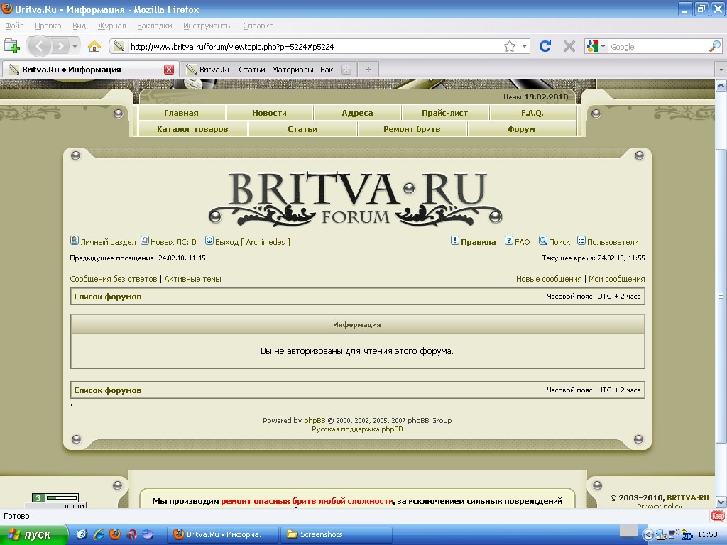 Re: "Вы не авторизованы для чтения этого форума"Виноват, нет такого объяснения на странице