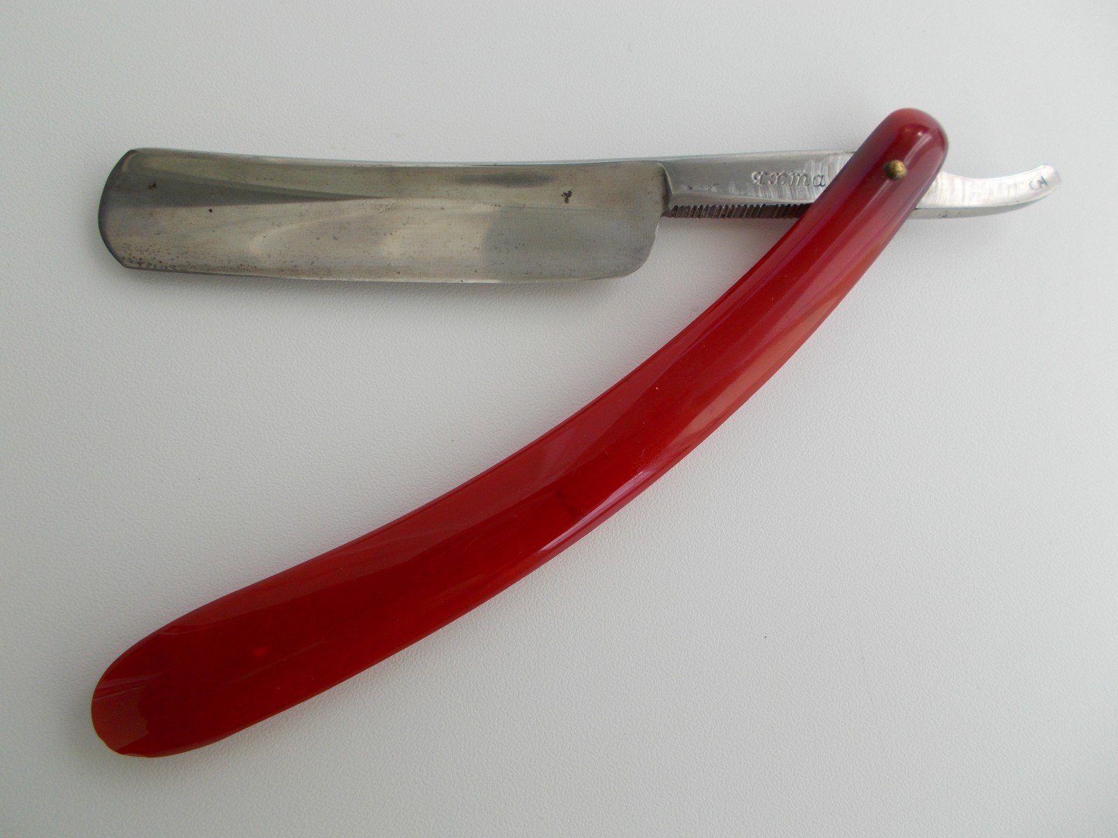 Re: Бритва до... и после...Старая французская бритва NOGENT. Долго лежала у меня. Фото "ДО", к сожалению, только от уважаемого, пропавшего РУМАТЫ. Ручку оставил старую, шпаклевал. Пины - самопал. Клинышек - слон.кость. В бритье просто шикарная, пожалуй одна из лучших, что у меня есть.