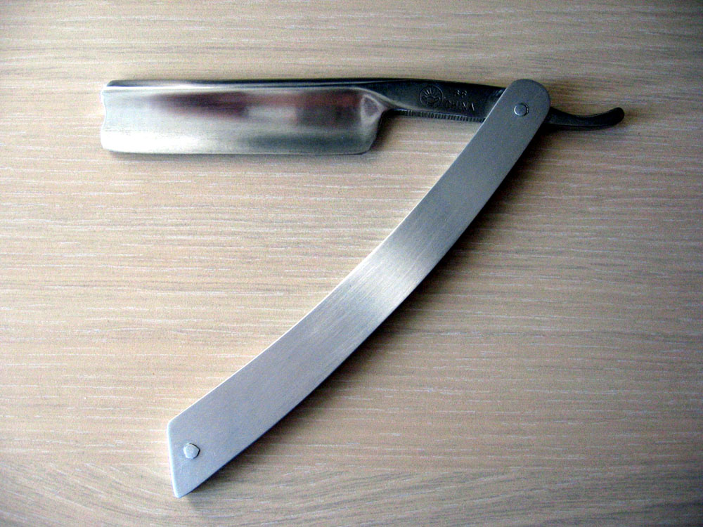Re: Бритва до... и после...Доброго времени суток! Решил выложить на суд общественности свою первую работу. Поскольку опыт по работе с металлом не велик, а с бритвами только сдвинулся с отметки "0", прошу строго не судить. "Жертвой" эксперимента пала опасная бритва "Gold Dollar" приобретенная на этом сайте. Фотографии "до" не сделал, от того позволю себе выложить фотографию с этого сайта. После работы бритва изменила формы своего клинка и сменила ручку на алюминиевую.