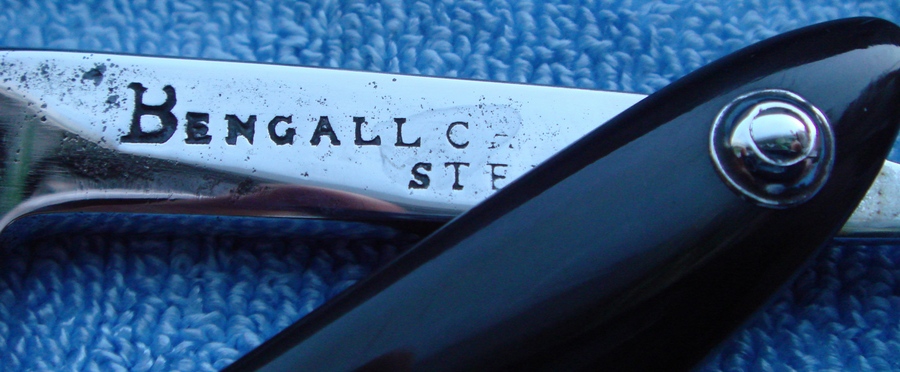 Re: Бритва до... и после...Пришла ко мне уставшая временем и жизнью бритва. Старинный Bengall клин ширина 7/8 с глубокими кавернами и поврежденной ручкой. Попробовал аккуратно вернуть его к жизни, без фанатизма. Полностью все каверны не стал удалять , хотелось сохранить аутентичность данного клинка, оставил родные шайбы. Ручка новая рог , ну и как положено клин олово.Вот как то так.