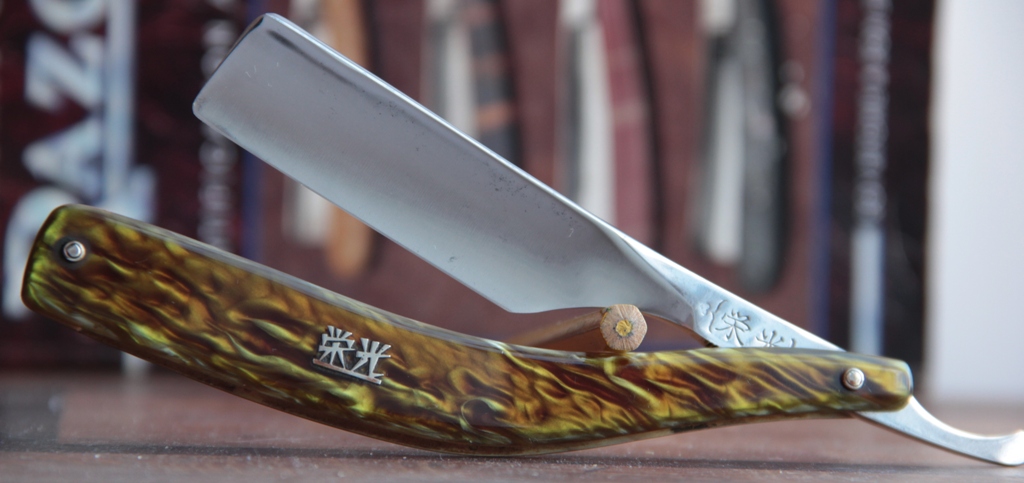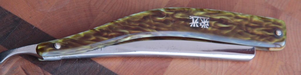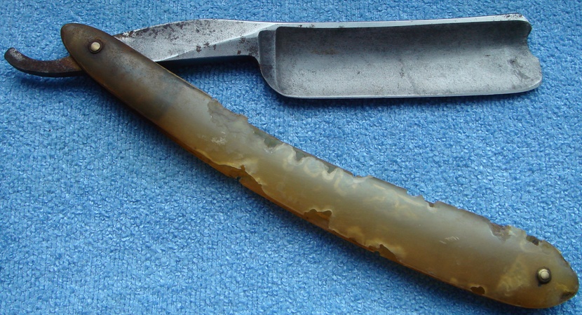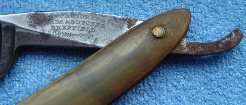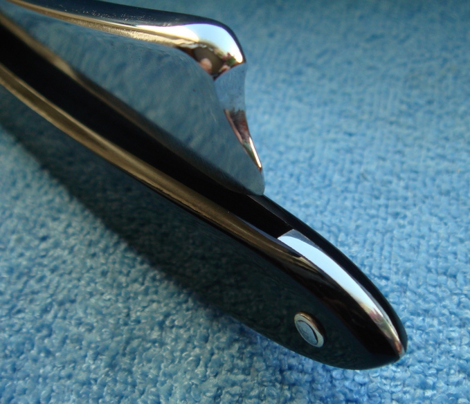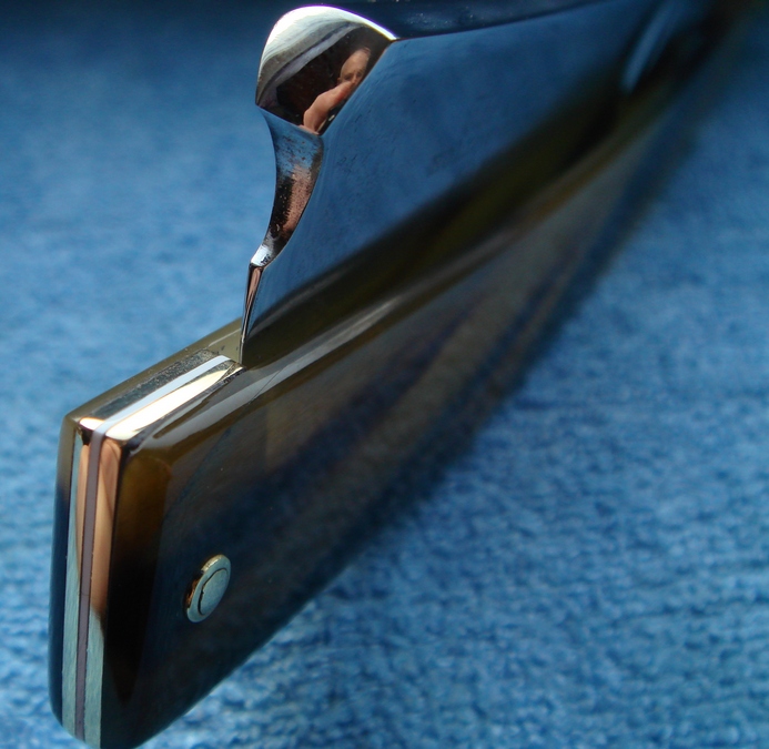 Re: Бритва до... и после...Немного взбодрил вот такого понтового японца. Предыдущий владелец ,с дуру, чтобы снять ржу и патину, прошёлся грубой шкуркой вдоль полотна, чем оставил глубокие царапины. Пришлось тут немного попотеть...