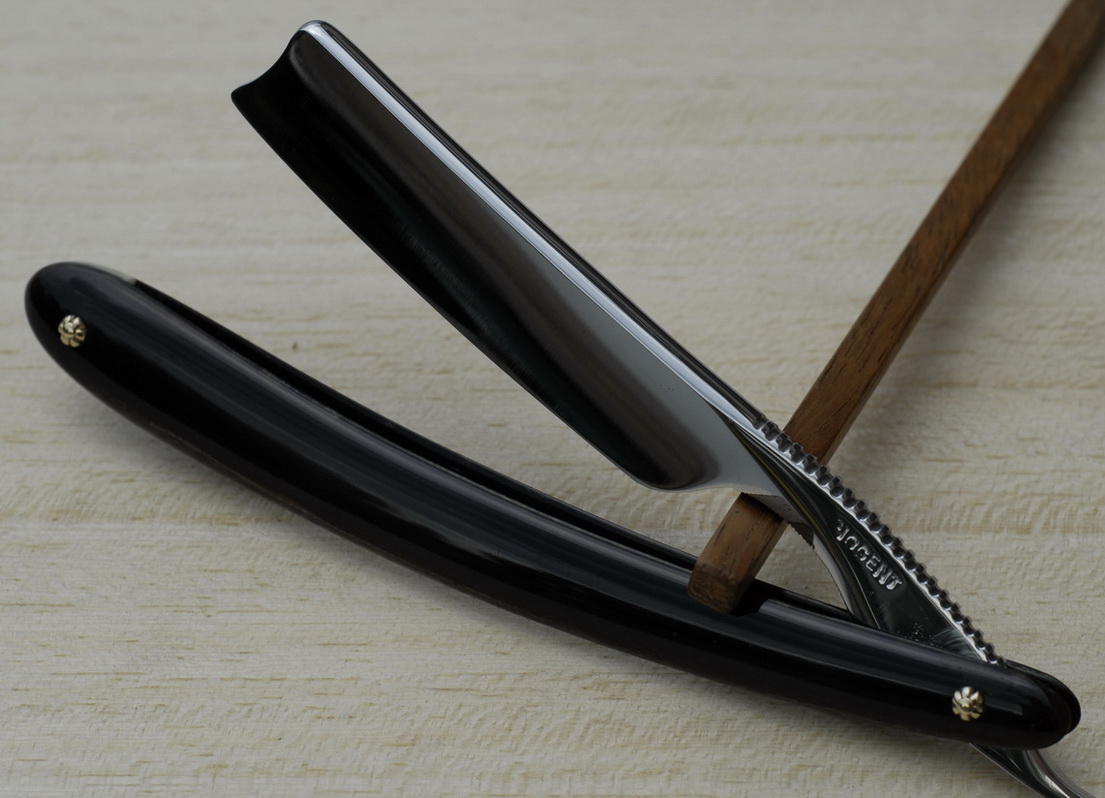 Re: Бритва до... и после...Старая французская бритва NOGENT. Долго лежала у меня. Фото "ДО", к сожалению, только от уважаемого, пропавшего РУМАТЫ. Ручку оставил старую, шпаклевал. Пины - самопал. Клинышек - слон.кость. В бритье просто шикарная, пожалуй одна из лучших, что у меня есть.