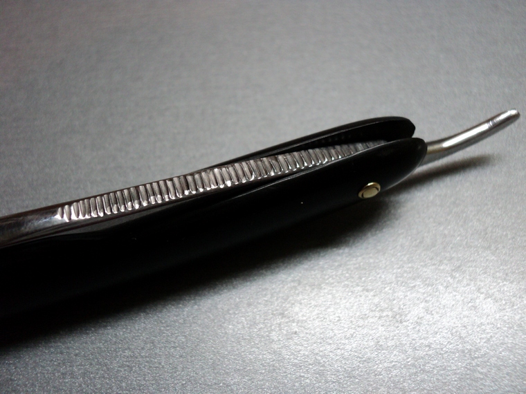 Re: Самодельные опасные бритвы :: фотоБритовка из обоймы подшибника. На обушке штамп ГПЗ1. На эрле не прокованная канавка.