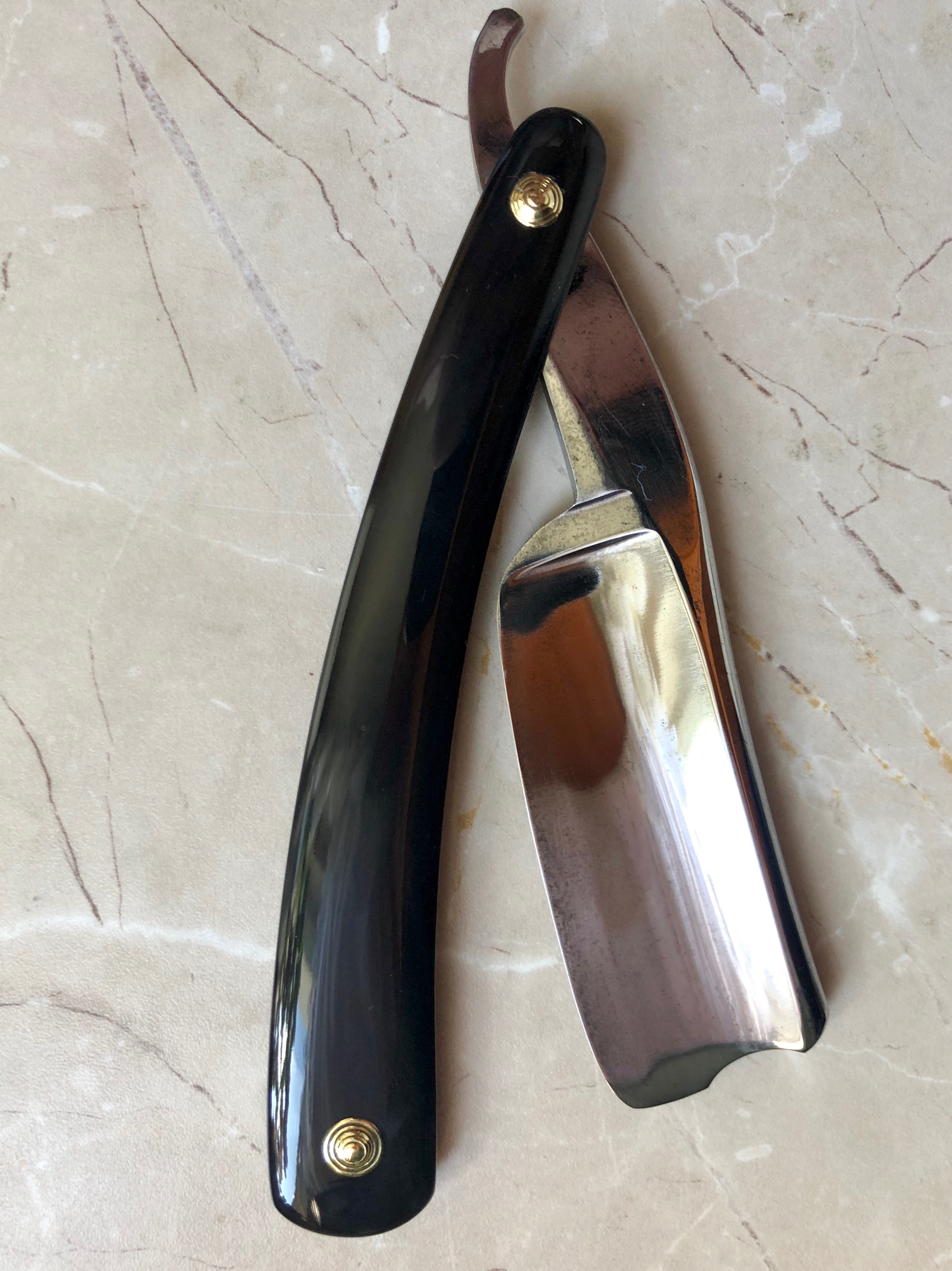 Бритва до... и после...Объем работ: Разборка, регринд, шлифовка, полировка, сатин, новая оправа из рога буйвола, сборка и заточка.