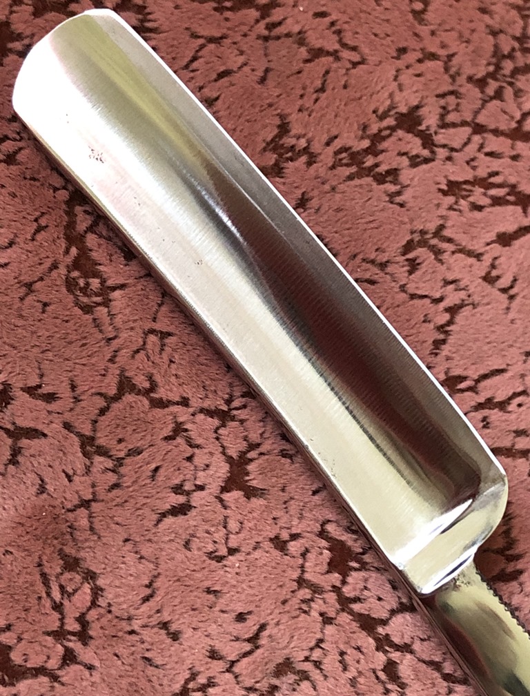 Протёр тряпочкой. В общем горбик пришлось до 0,3 мм. убирать. Ну и регринд делать. Чуть подправил мысок и пятку по своему вкусу. 32 года активно мусолю харю клинковой бритвой