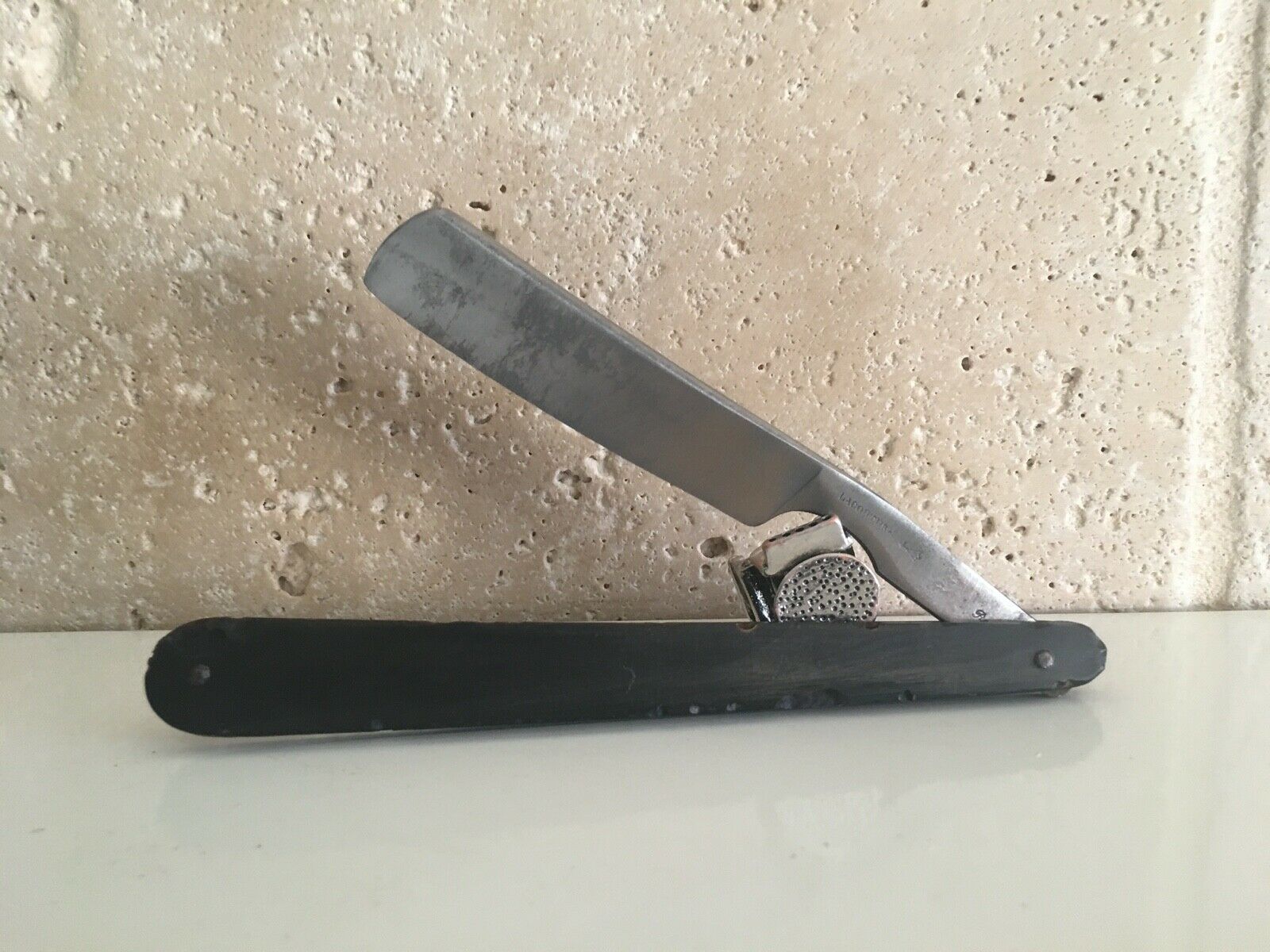 Еще одного француза протер тряпочкой. Клинок был "блестящий" после стальной кор-щетки. Половинка оправы и пины заменены. 32 года активно мусолю харю клинковой бритвой