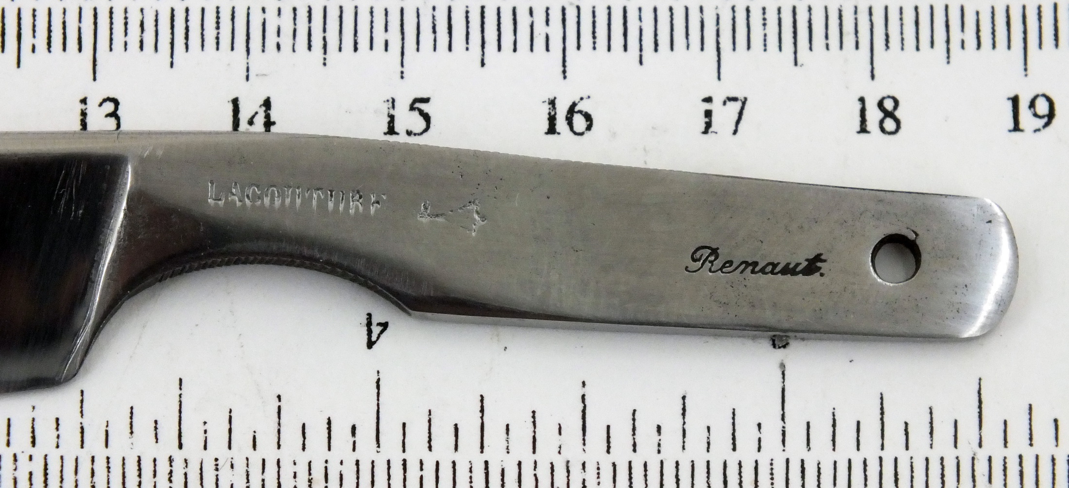Бритва до... и после...Трещина идет под углом вверх, наверное это помогло сохранить достаточной жесткости металла в области носика.