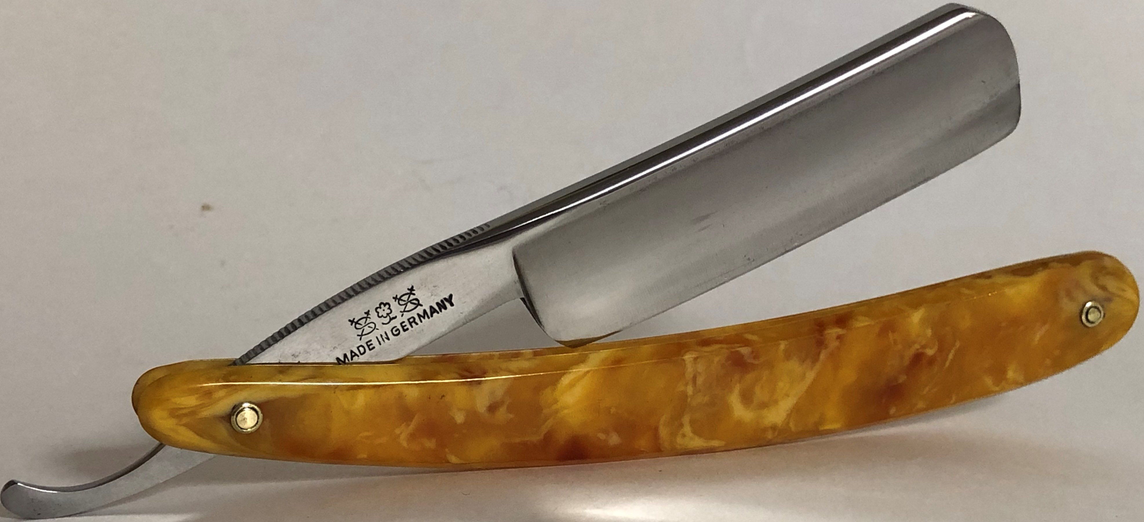 Бритва до... и после...Получил огромное удовольствие от кропотливой работы по приведению в чувство старинного "мясника",без следов пользования, как я понимаю.Давно мне не попадался псевдо-фрейм от этого легендарного бренда.И хотелось попытаться все оставить максимально в оригинальном состоянии.