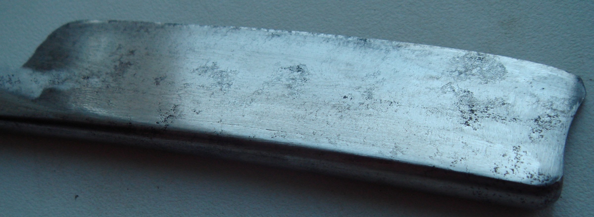 Re: Бритва до... и после...На фото не видно, разрешение стремновато, но коррозия была и на обухе и на рк. Просто не задумался о восстановлении граней, если честно на мой вкус так даже лучше. Но вот при заточке возникла проблема, так как обух был съеден начали стачиваться бока, это привело к не очень приятному зффекту. Ну да ладно. Рано я бритву засунул в эту тему с ней еще работать и работать.. пойду завтра токарный станок мучать.